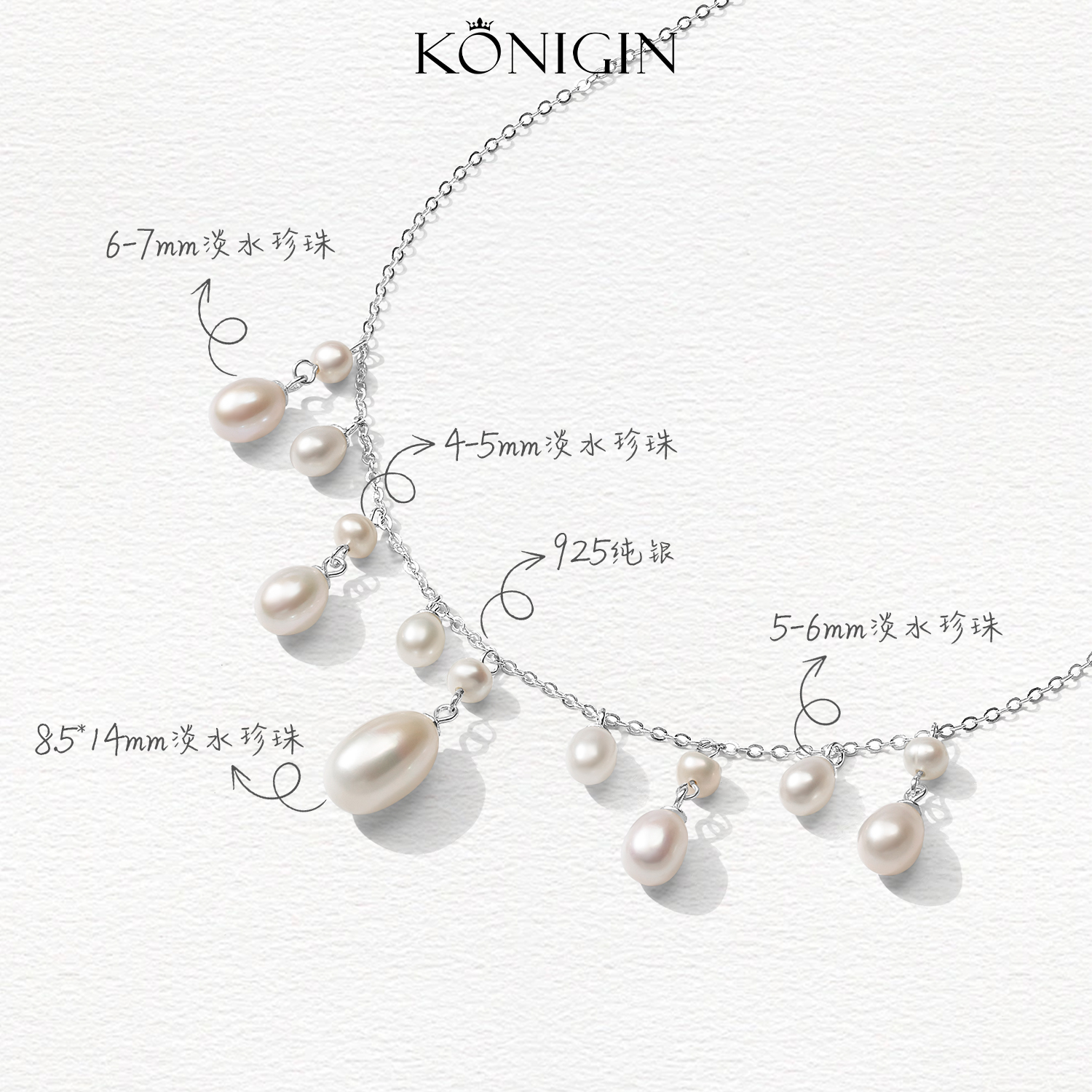 Konigin淡水珍珠项链女轻奢小众水滴米珠吊坠925纯银锁骨链夏配饰