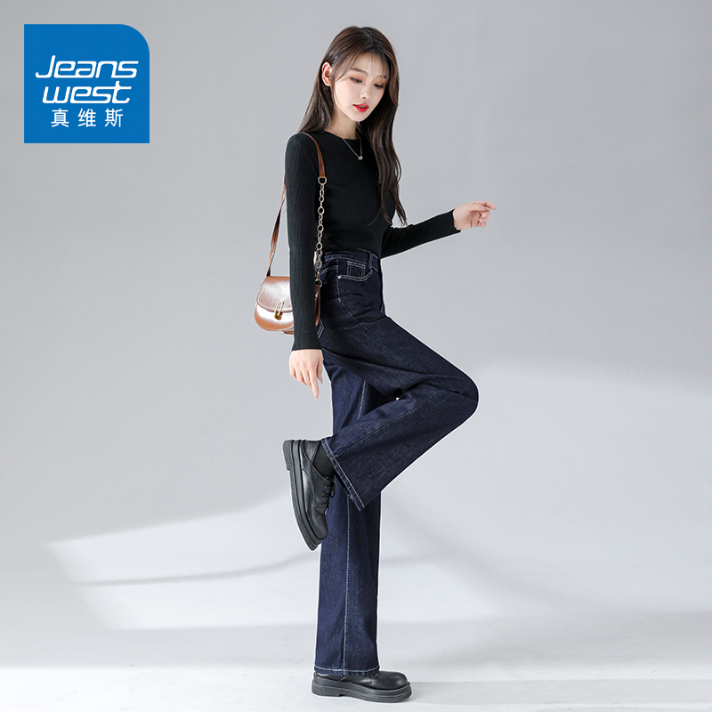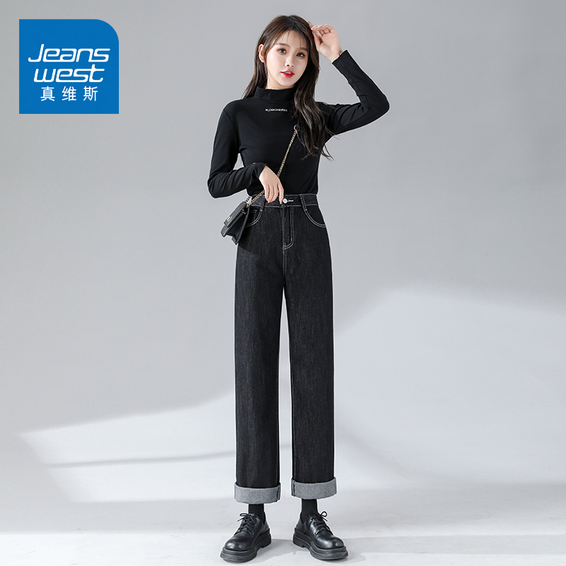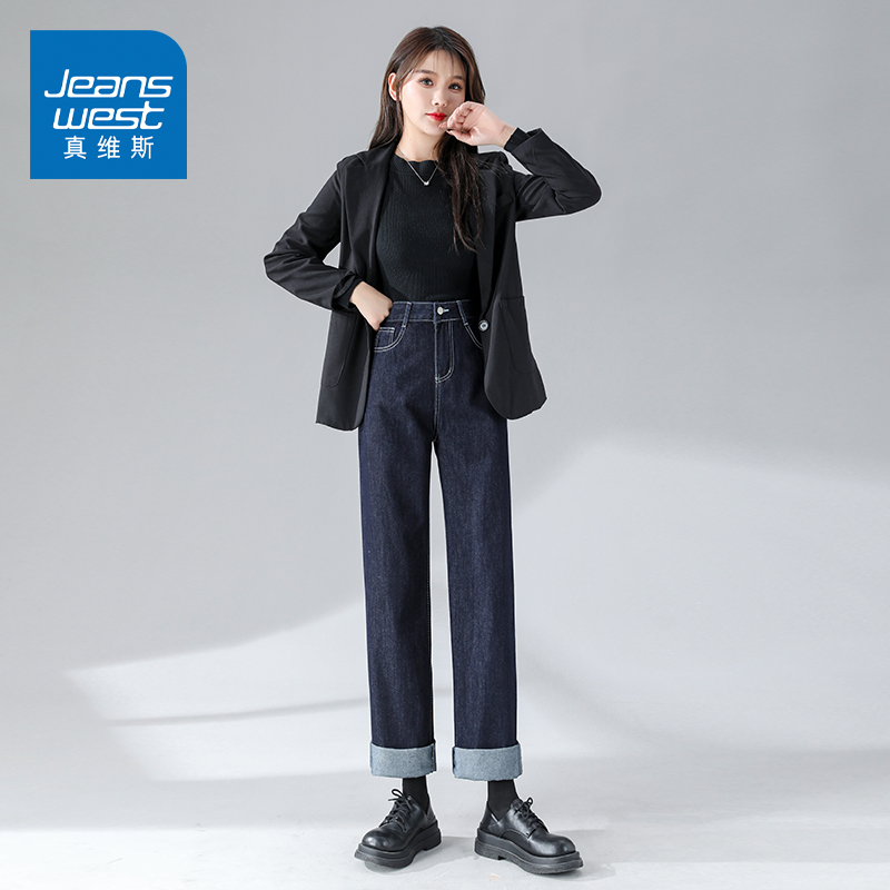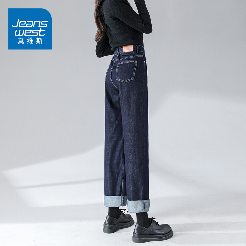 KZH真维斯高腰加绒牛仔裤女2025秋冬新款九分小个子显高裤子女款