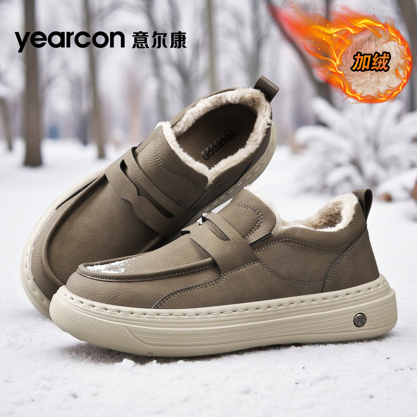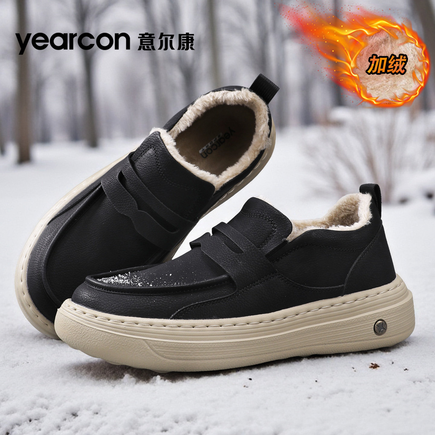 意尔康乐福男鞋2026新款冬季加绒棉鞋休闲皮鞋男士一脚蹬豆豆板鞋