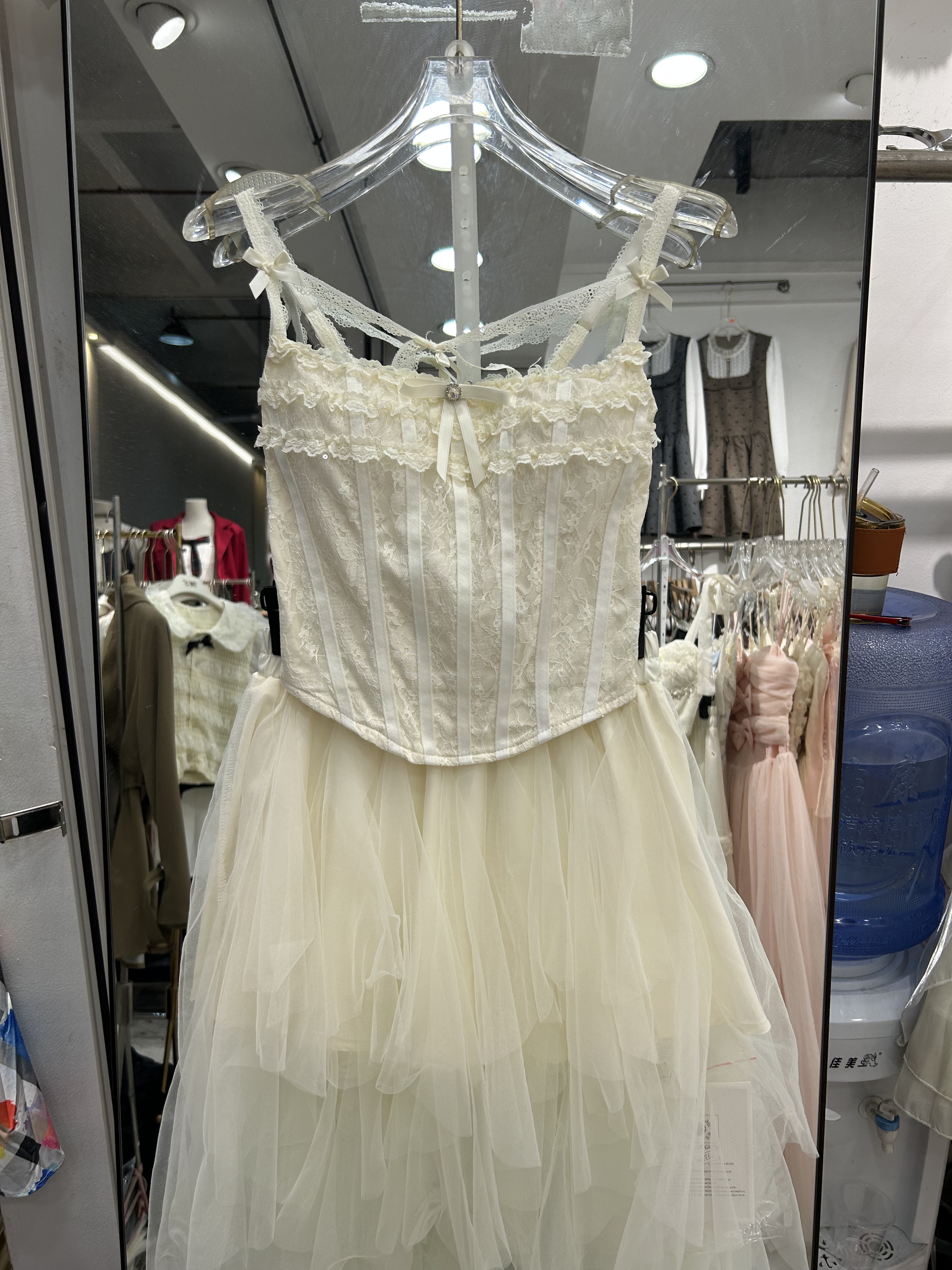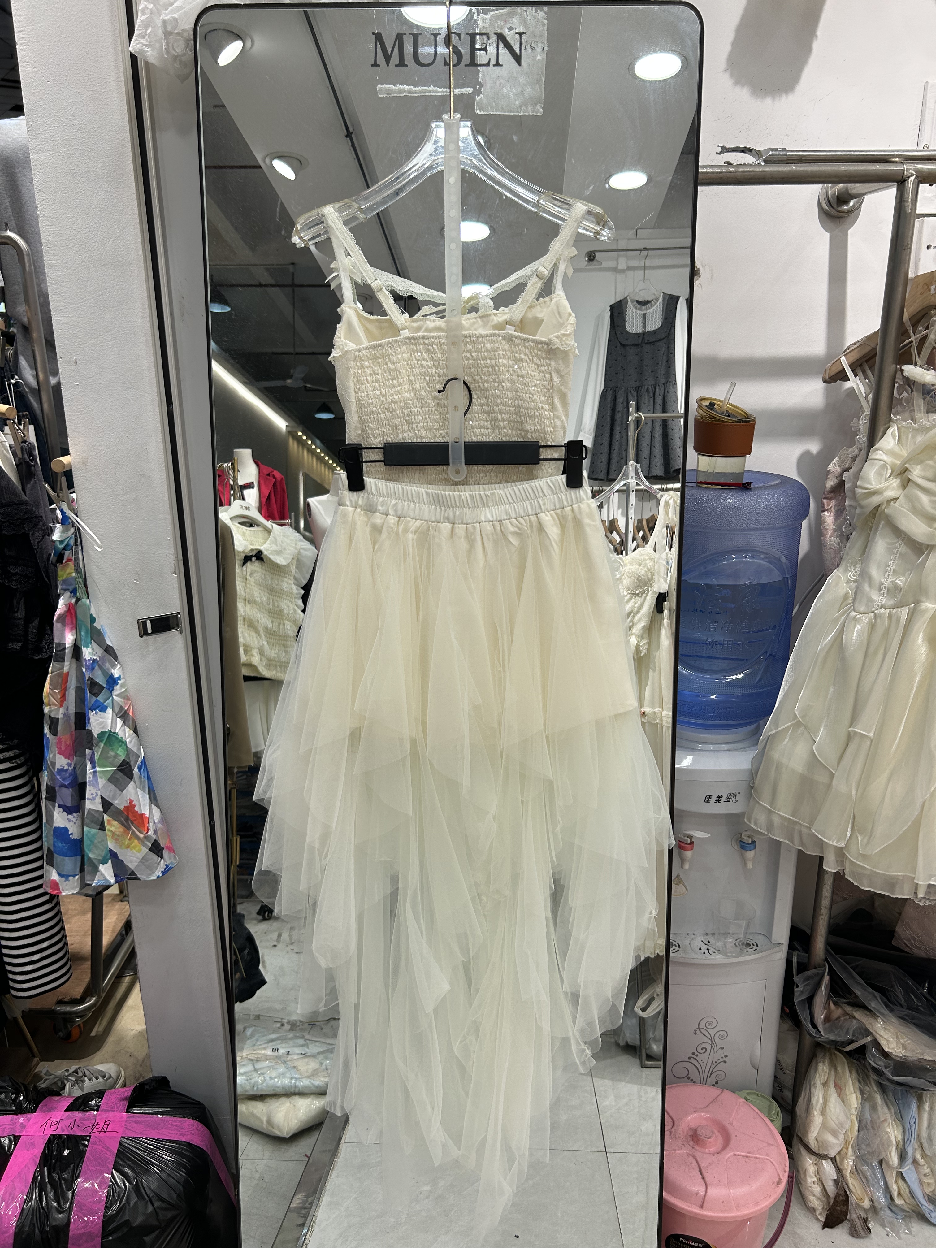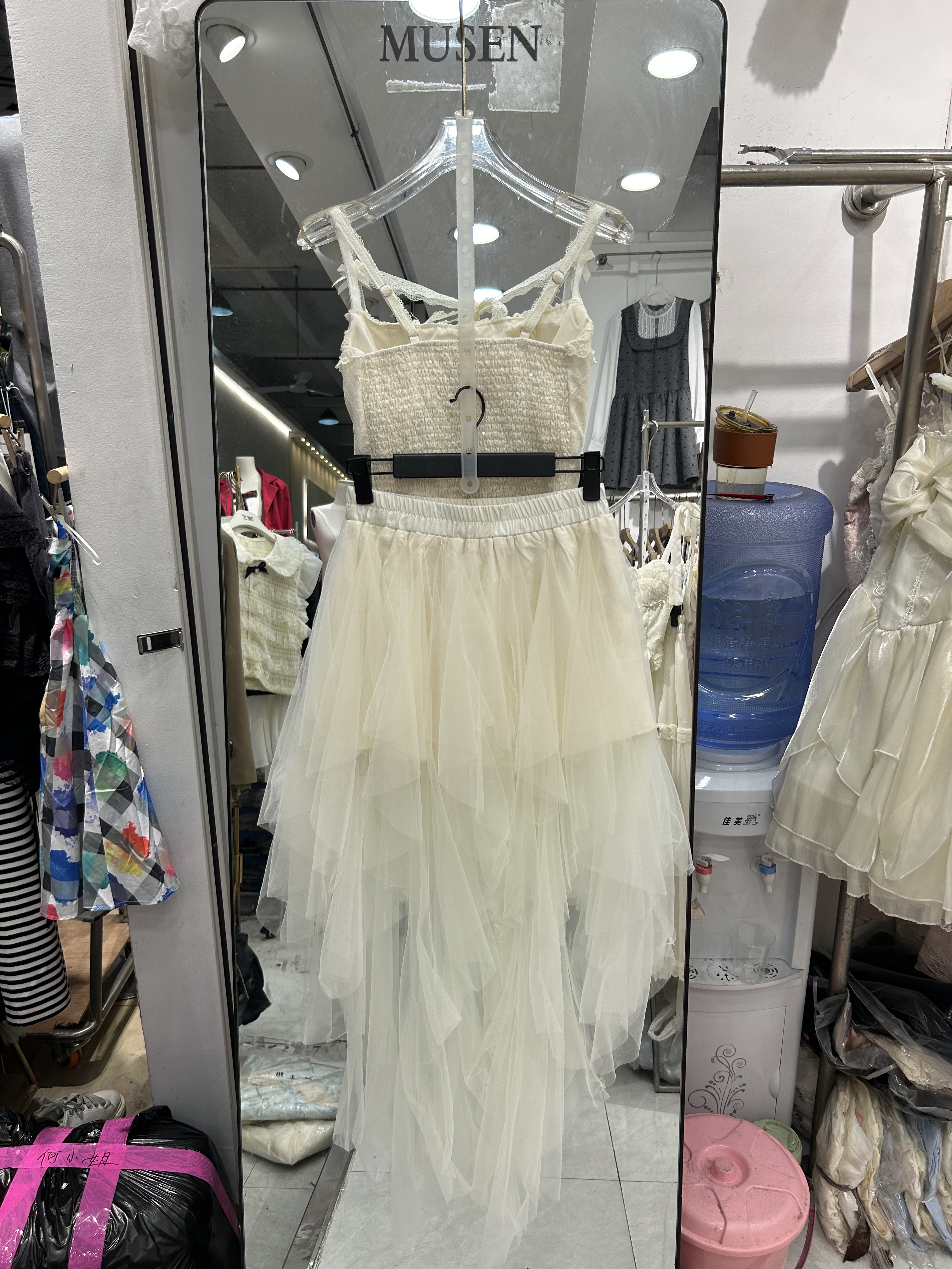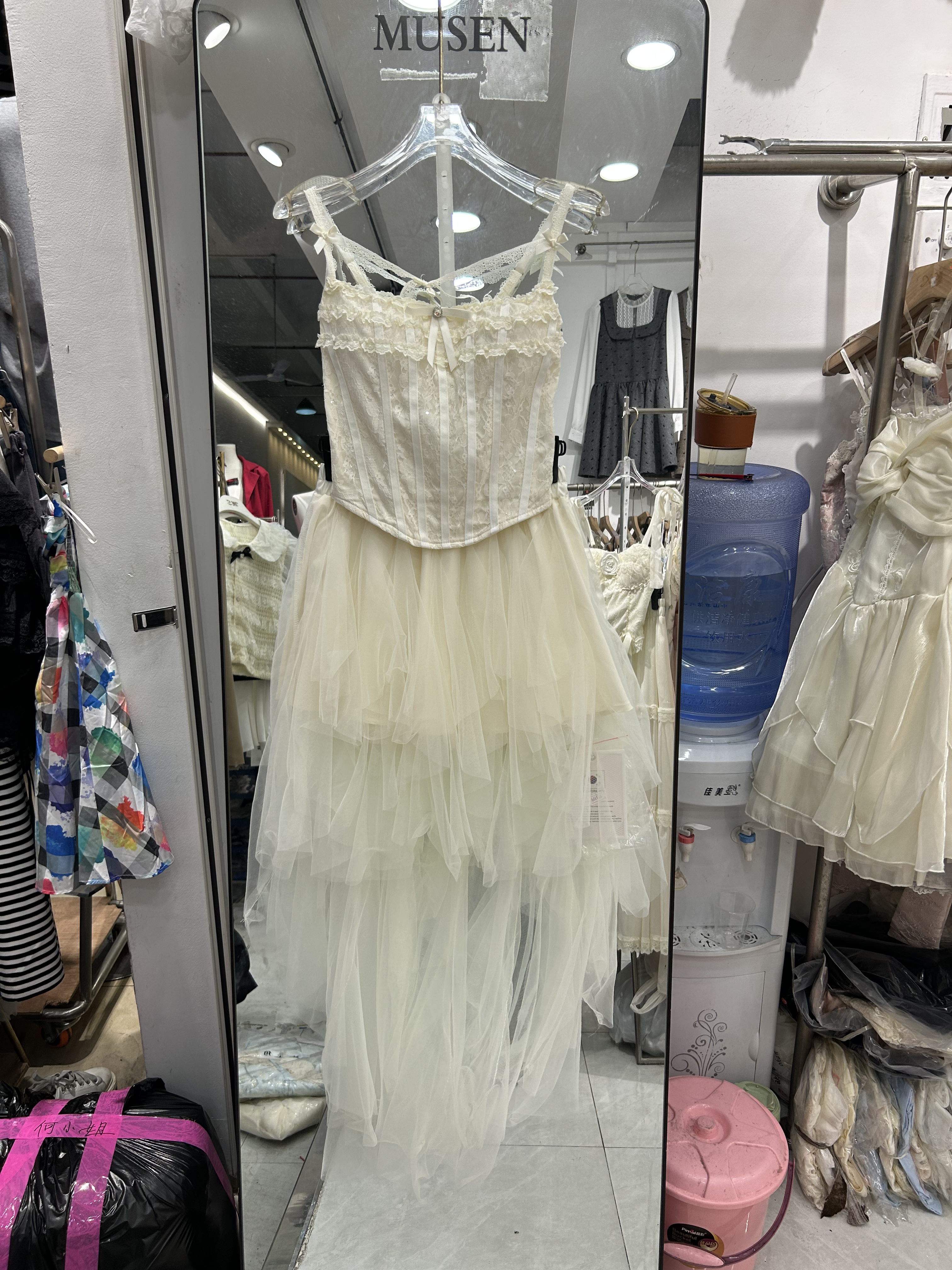 初春新款高级独特漂亮绣花亮片不规则吊带显瘦网纱连衣裙礼服裙女
