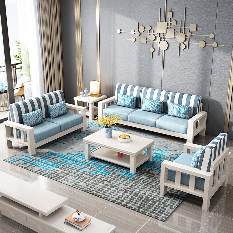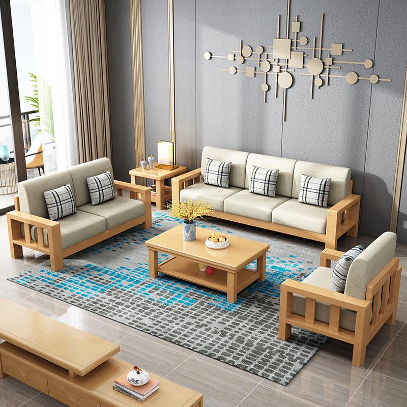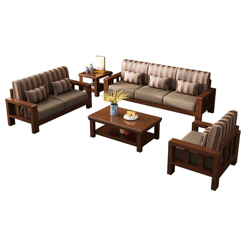 新中式实木布艺沙发1+2+3组合小户型客厅经济型