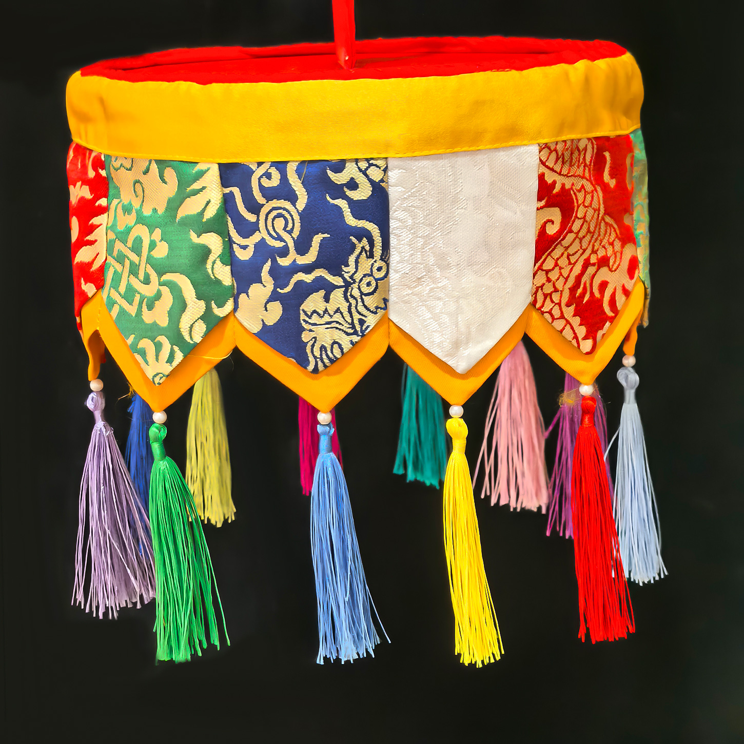 藏式龙纹小宝伞宝盖民族风家用家居彩色双尖角黄色小宝幢直径25cm