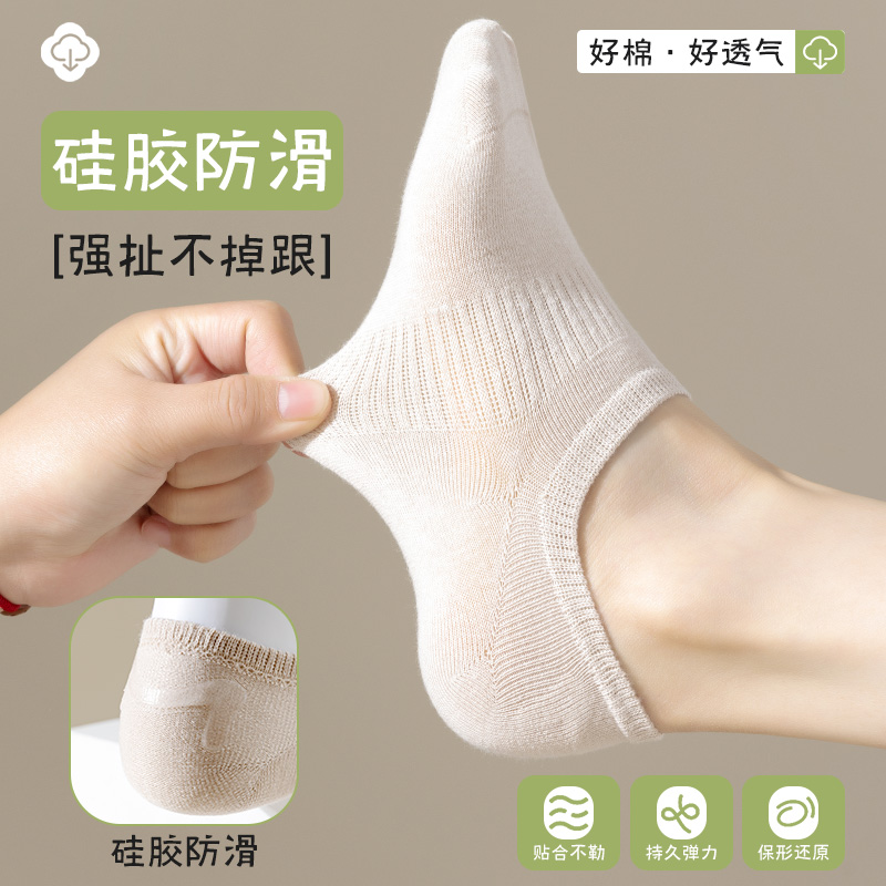 袜子女船袜2025春夏季防滑不掉跟浅口隐形袜纯棉防臭春秋款短筒袜