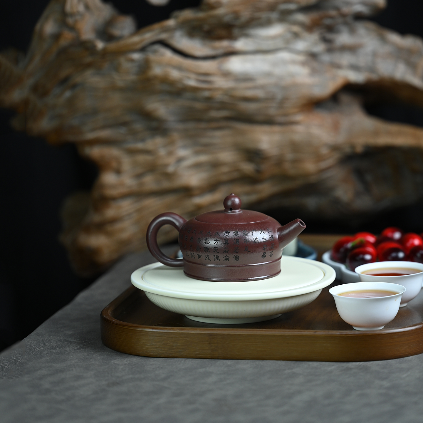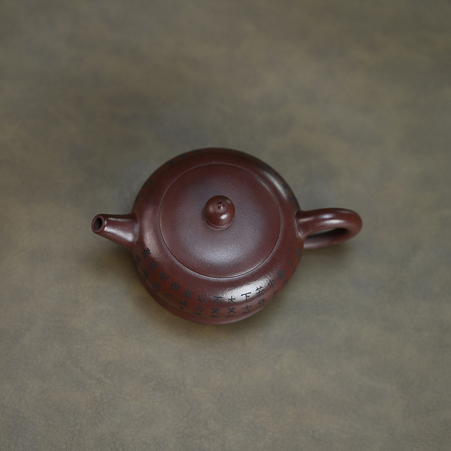 中式紫砂刻绘僧帽壶原矿