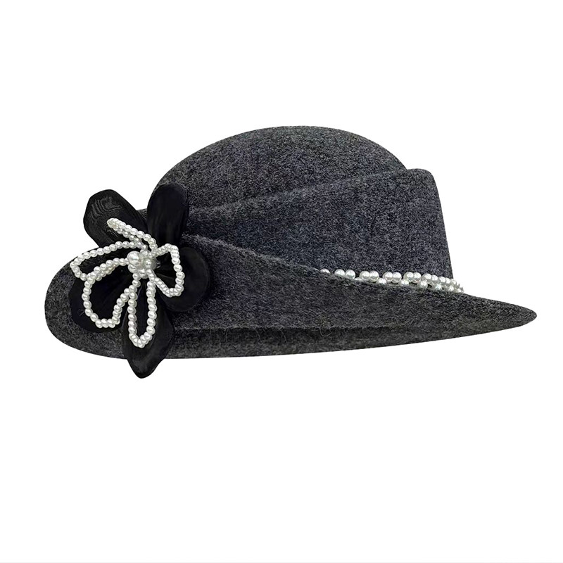 留洋千金气质赫本风针织花朵礼帽女秋冬季优雅高端复古高级感盆帽