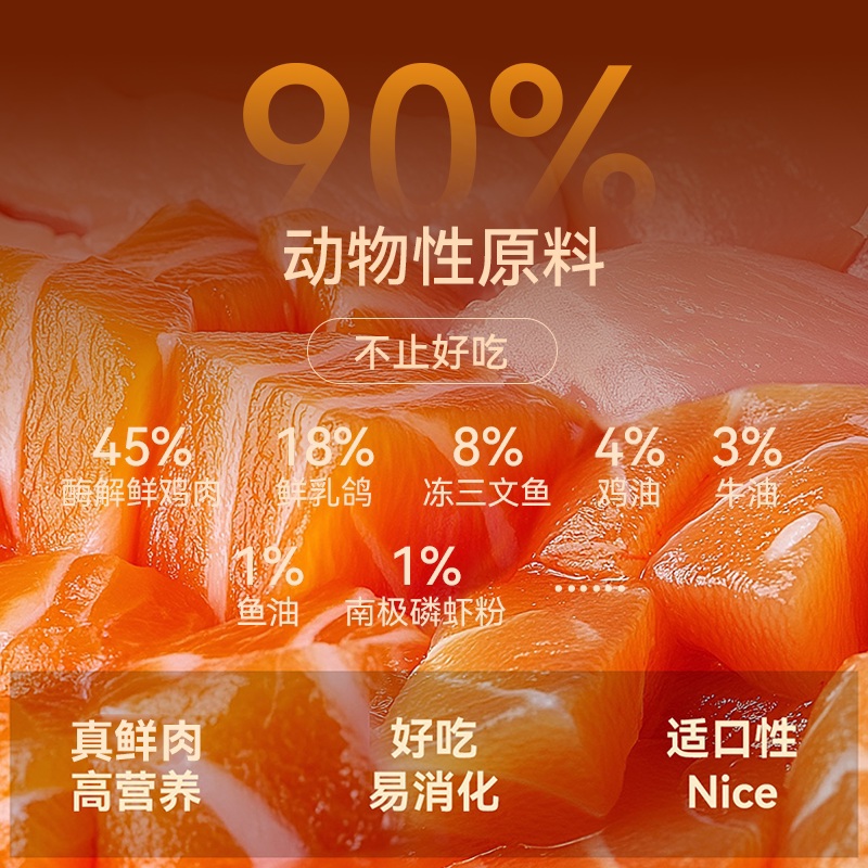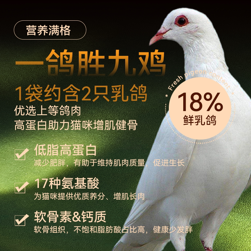 全价冻干三拼乳鸽猫粮42%粗蛋白营养长肉靓毛轻便臭试吃装
