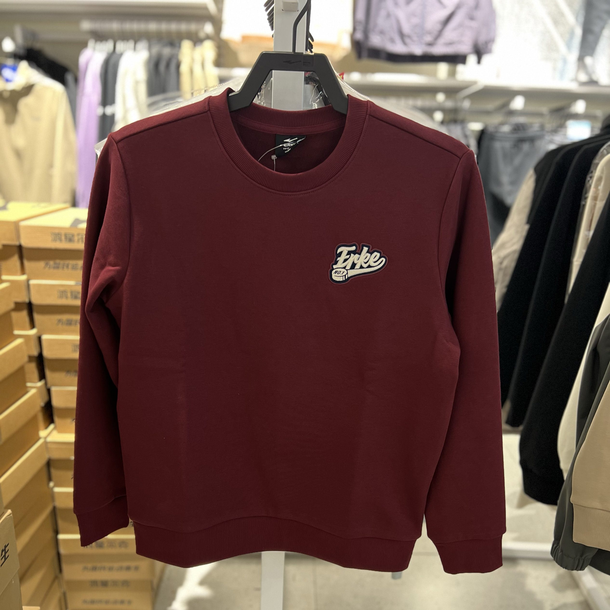 鸿星尔克休闲运动圆领加厚卫衣男