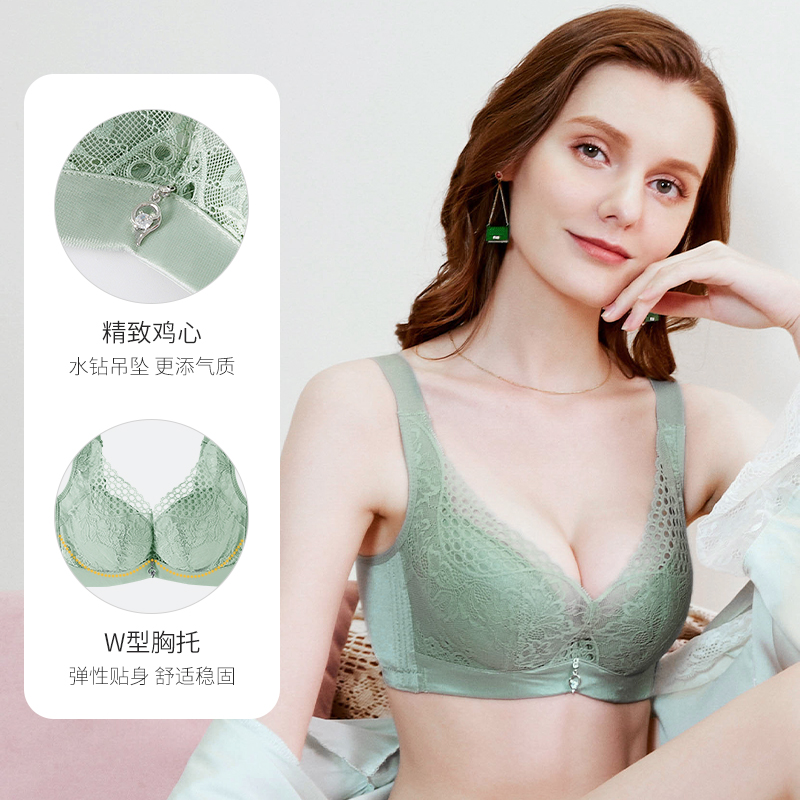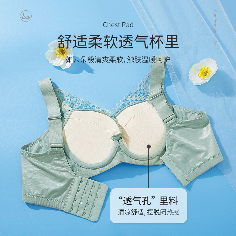爱戴内衣夏季薄款女大胸显小软钢圈宽肩带防下垂大码蕾丝文胸套装