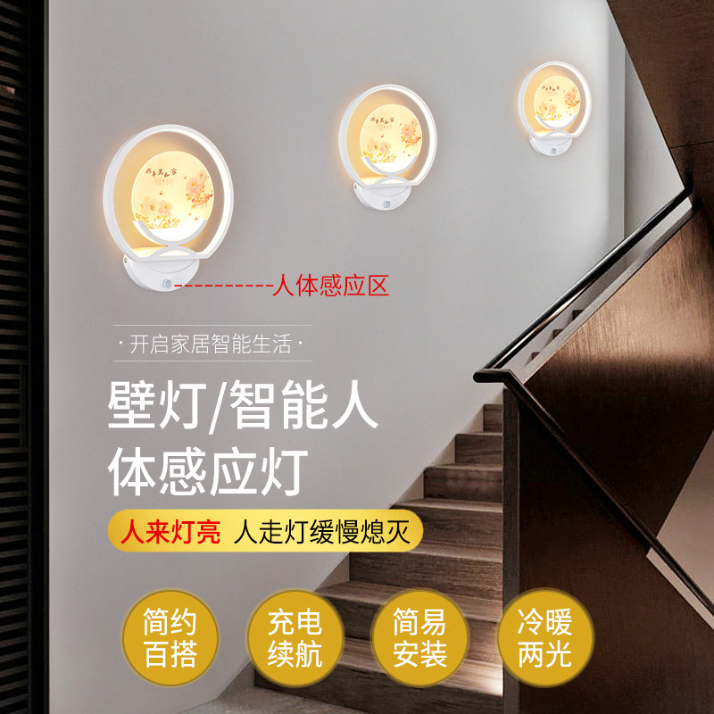 人体感应壁灯楼梯感应灯走廊入户过道灯智能雷达玄关墙灯现代中式