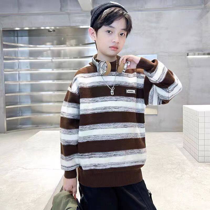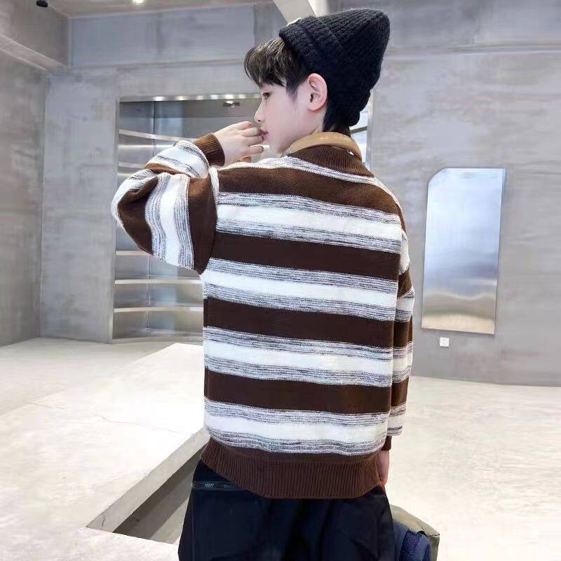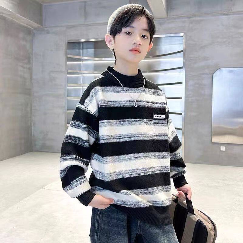 男大童毛衣秋冬2025新款中大童儿童男孩打底条纹加绒针织衫加厚
