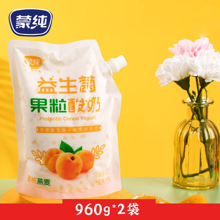 益生菌酸牛奶 黄桃燕麦酸奶960g*2袋早餐果粒低温发酵乳内蒙 蒙纯