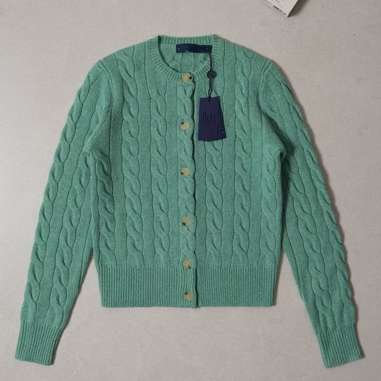 过验!80%羊毛20%羊绒拉夫针织老钱风开衫麻绞花小马圆领毛衣外套