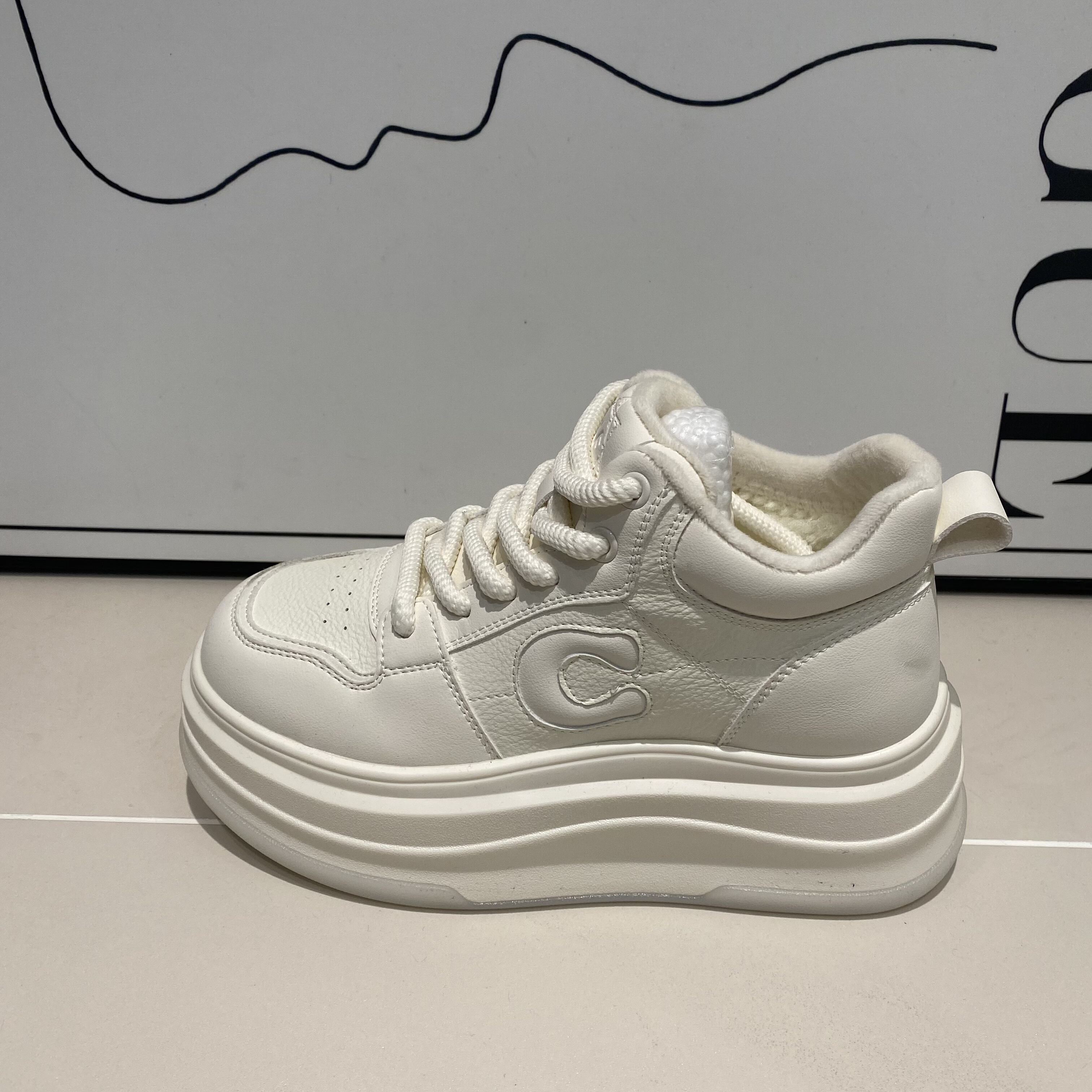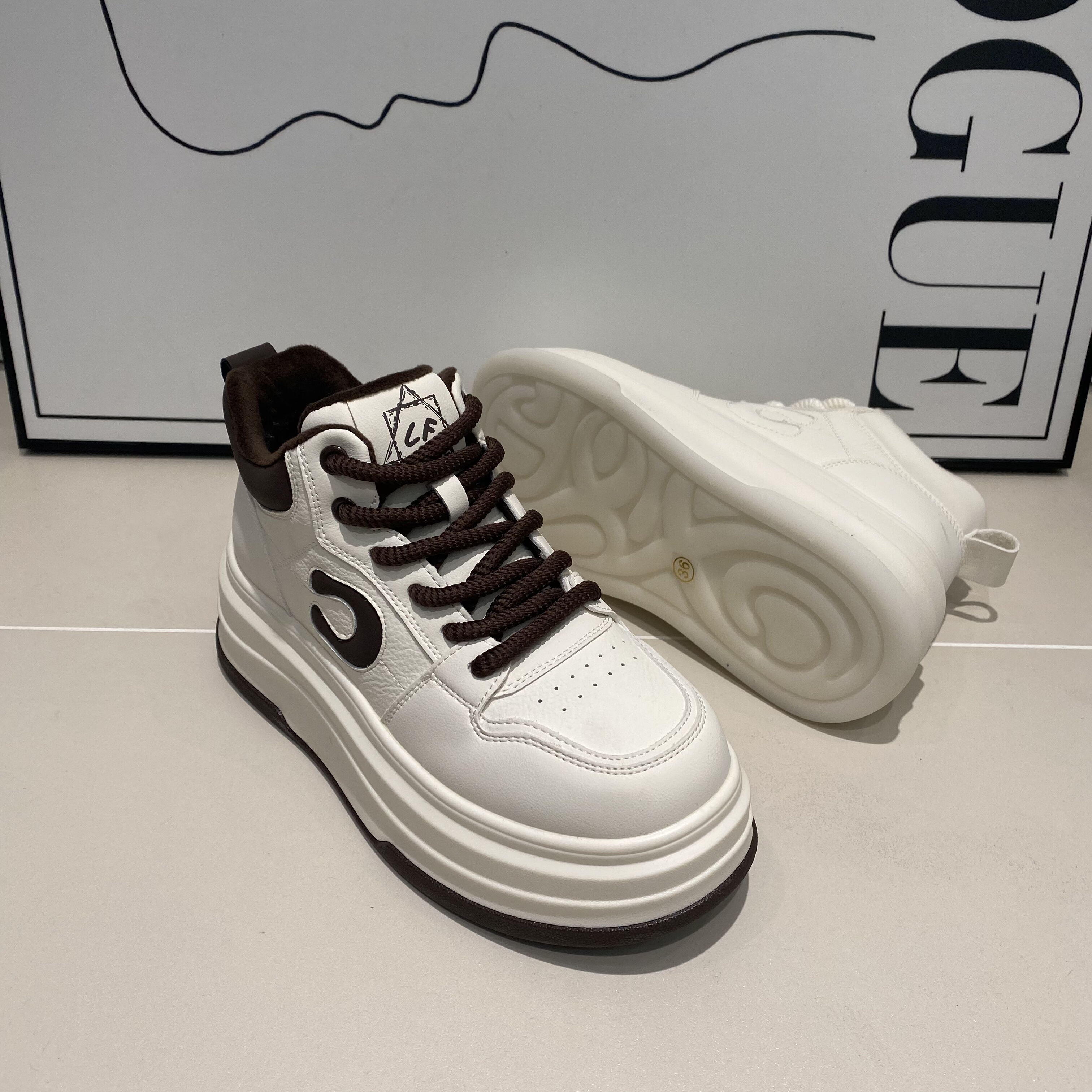 2025冬季女鞋防滑松糕厚底加棉高帮休闲鞋高腰大棉板鞋女潮鞋棉鞋