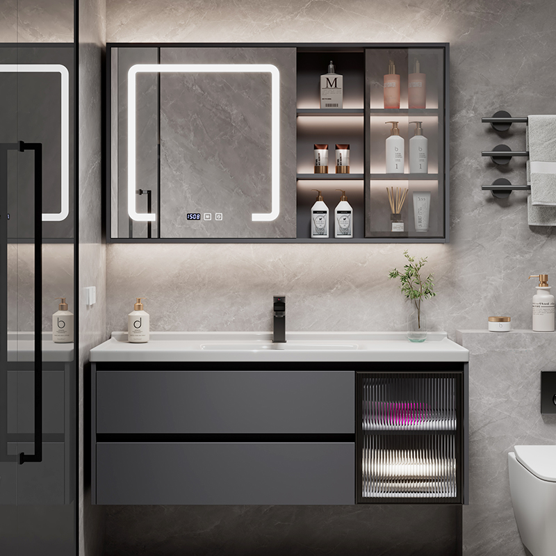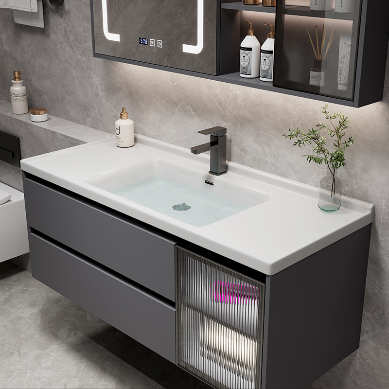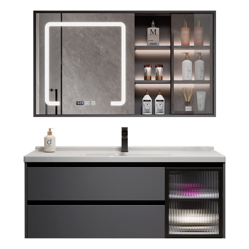 灰色卫浴室柜组合洗手台盆柜卫生间洗脸洗漱台现代简约陶瓷一体盆