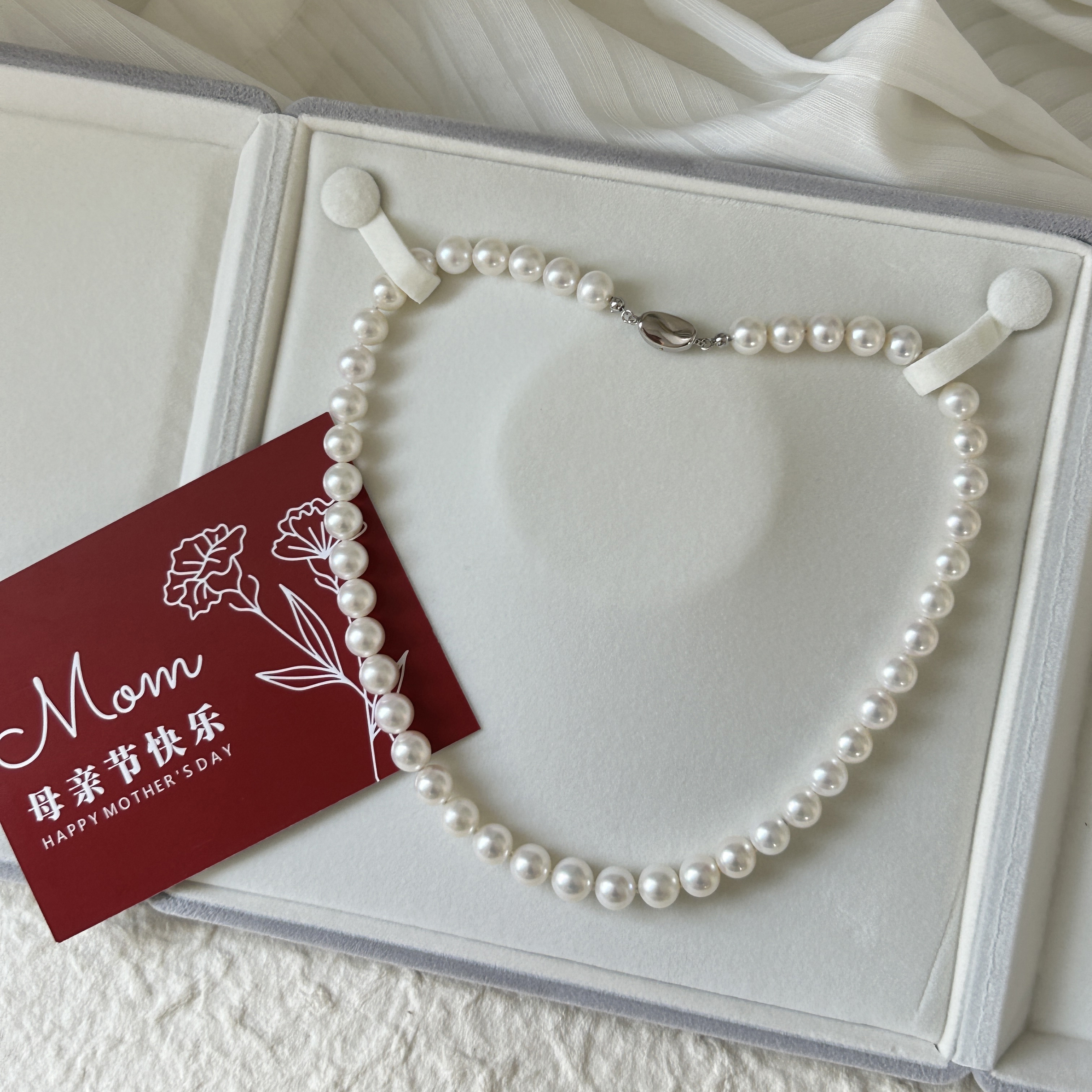 9-10mm天然真淡水无核珍珠项链颈链妈妈款女款2025新款爆款送长辈