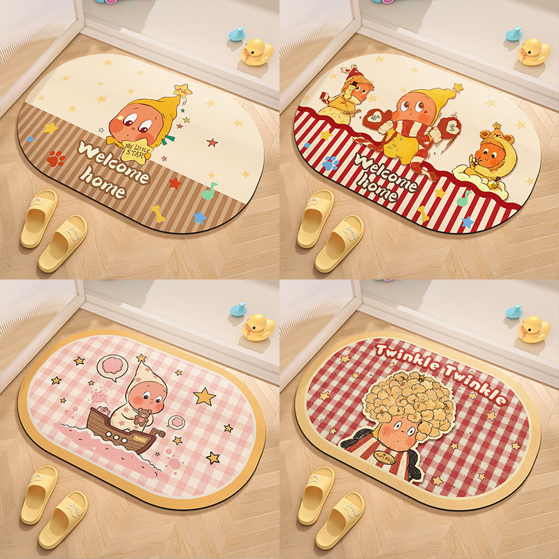 浴室地垫卡通可爱卫生间硅藻泥厕所门口速干吸水防滑门垫防摔脚垫