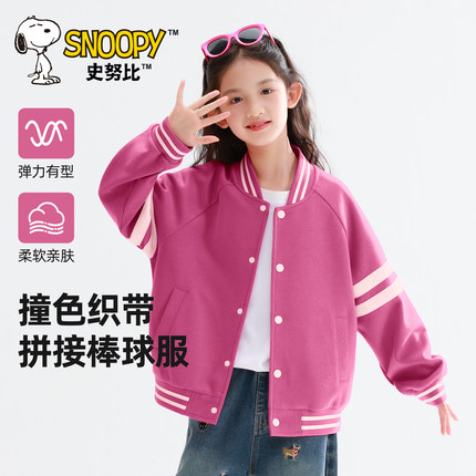 史努比女童外套春秋款2026新款洋气童装夹克衫薄款开衫儿童棒球服