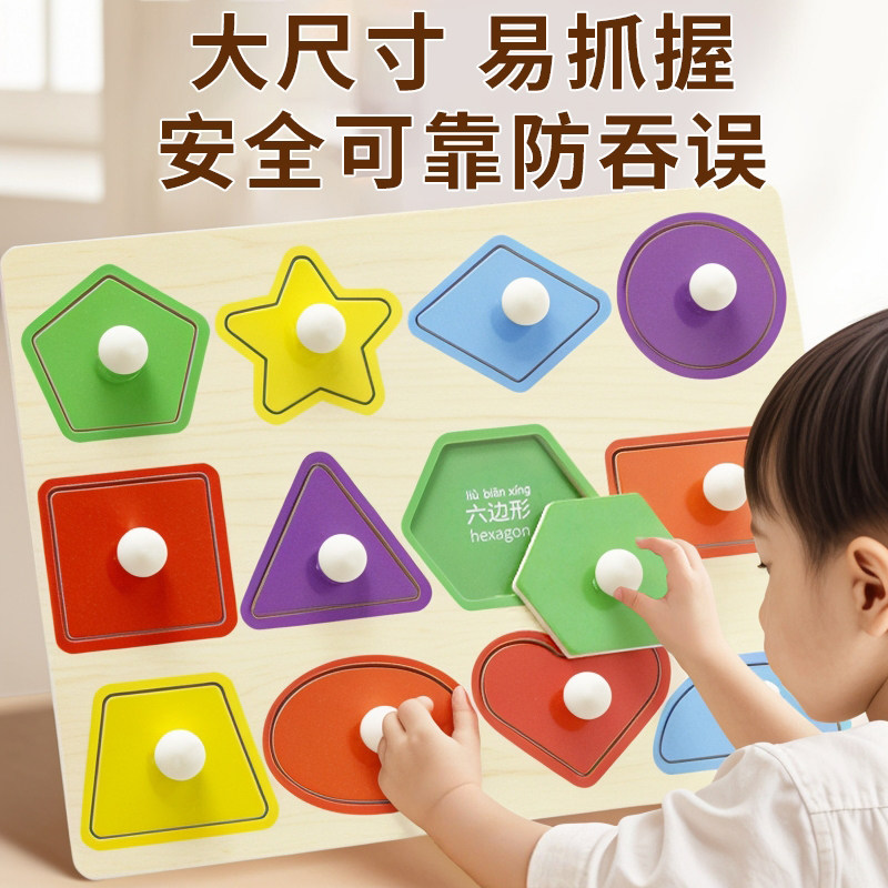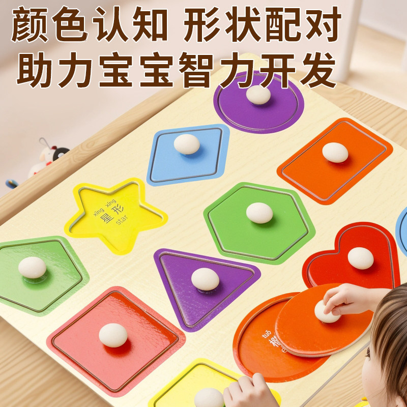 蒙氏早教手抓板积木玩具1一3岁宝宝几何形状配对儿童益智拼图嵌板