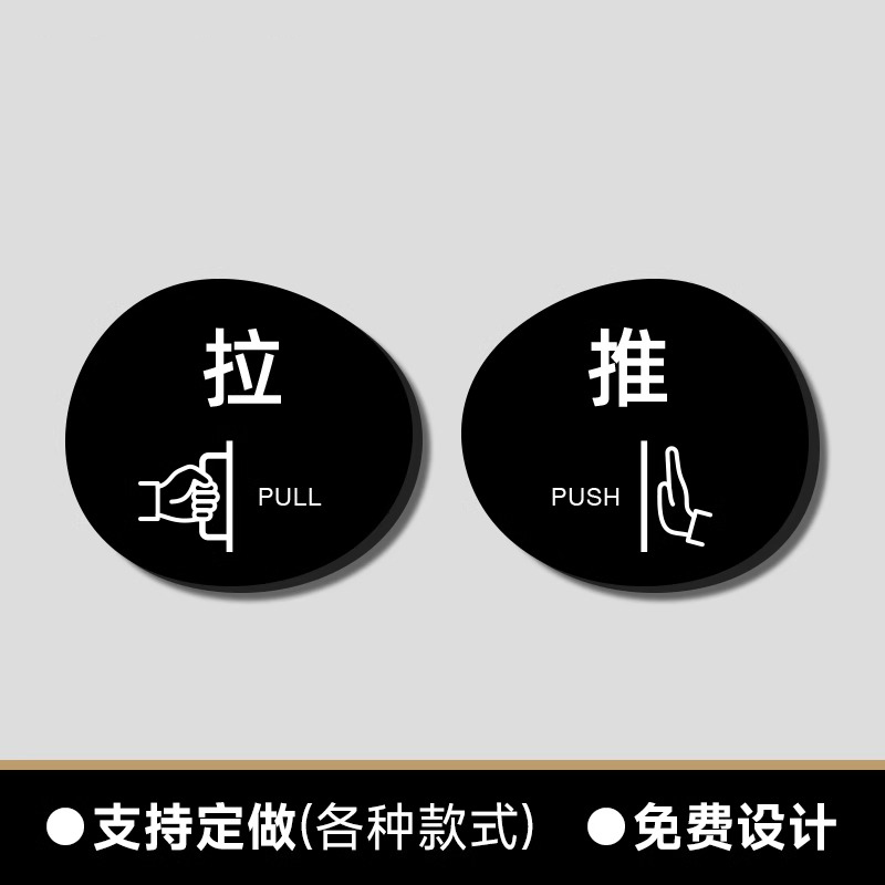 亚克力推拉门贴门牌温馨提示牌左右移门推字拉字标志牌玻璃门贴标识牌墙贴