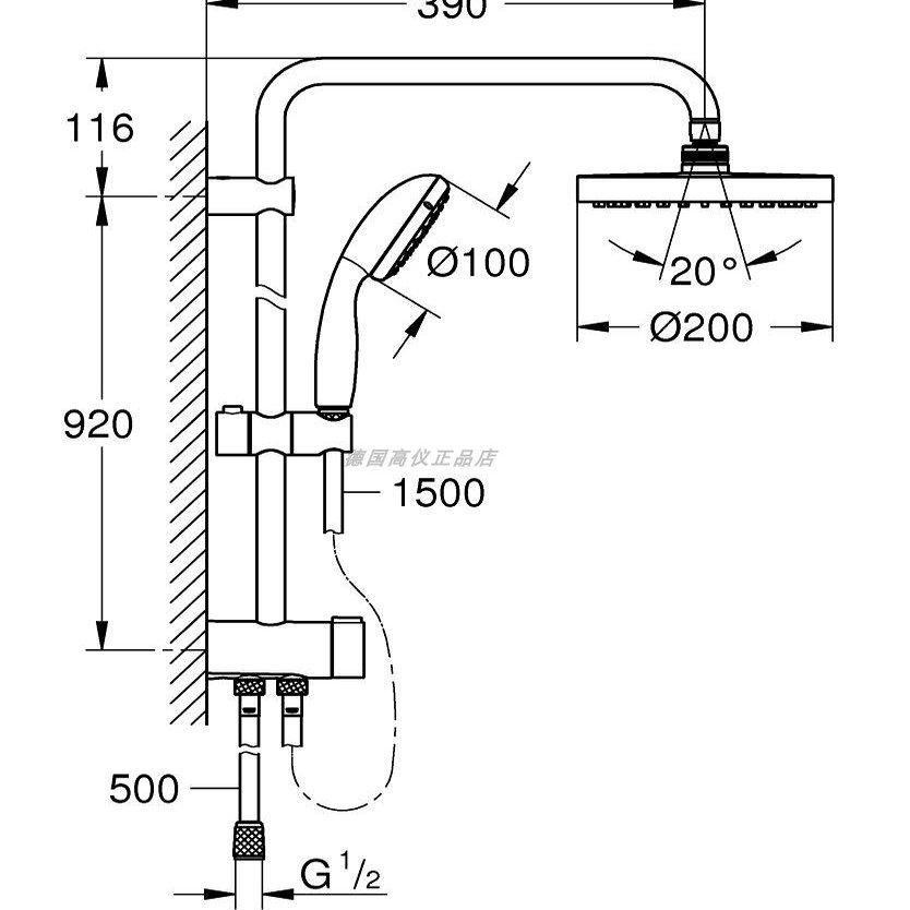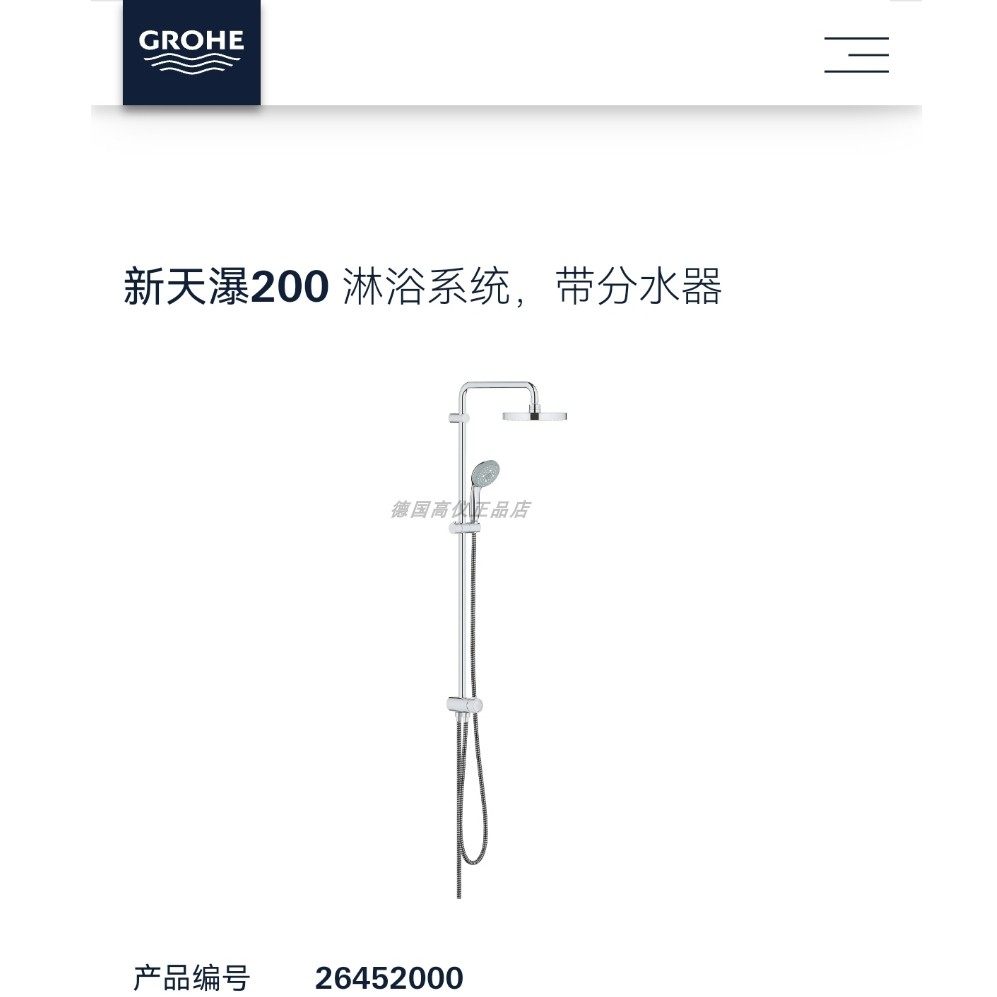 [清仓]Grohe德国高仪花洒带顶喷杆体 新天瀑全铜杆体套装26453000