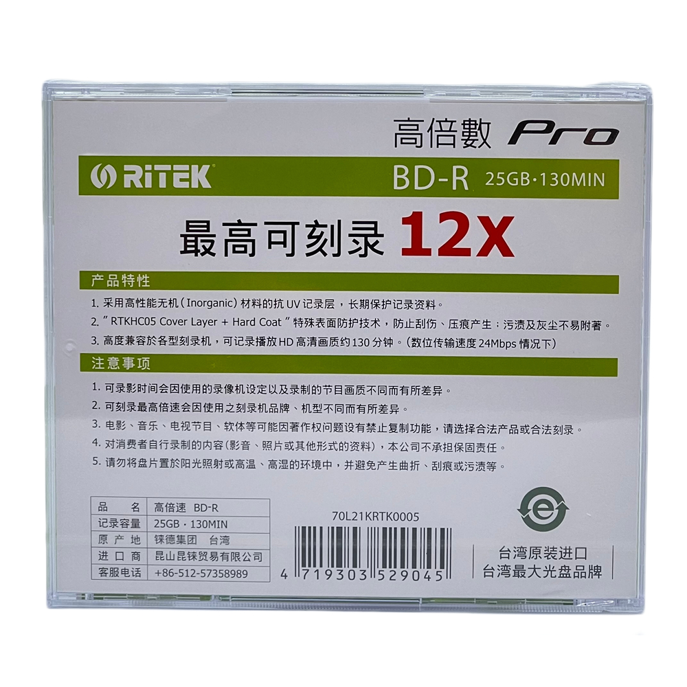 正品RiTEK/铼德BD-R PRO 25G空白蓝光刻录盘盒装光盘光碟专业级