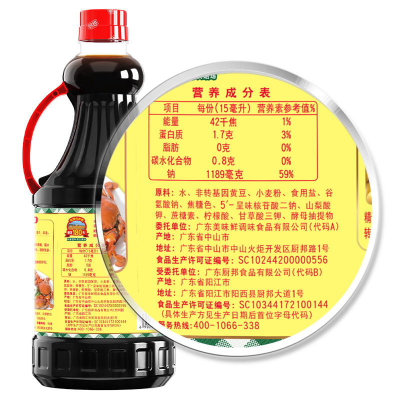 厨邦美味鲜酱油1.68L特级酿造生抽美味鲜金品生抽家用炒菜调味料
