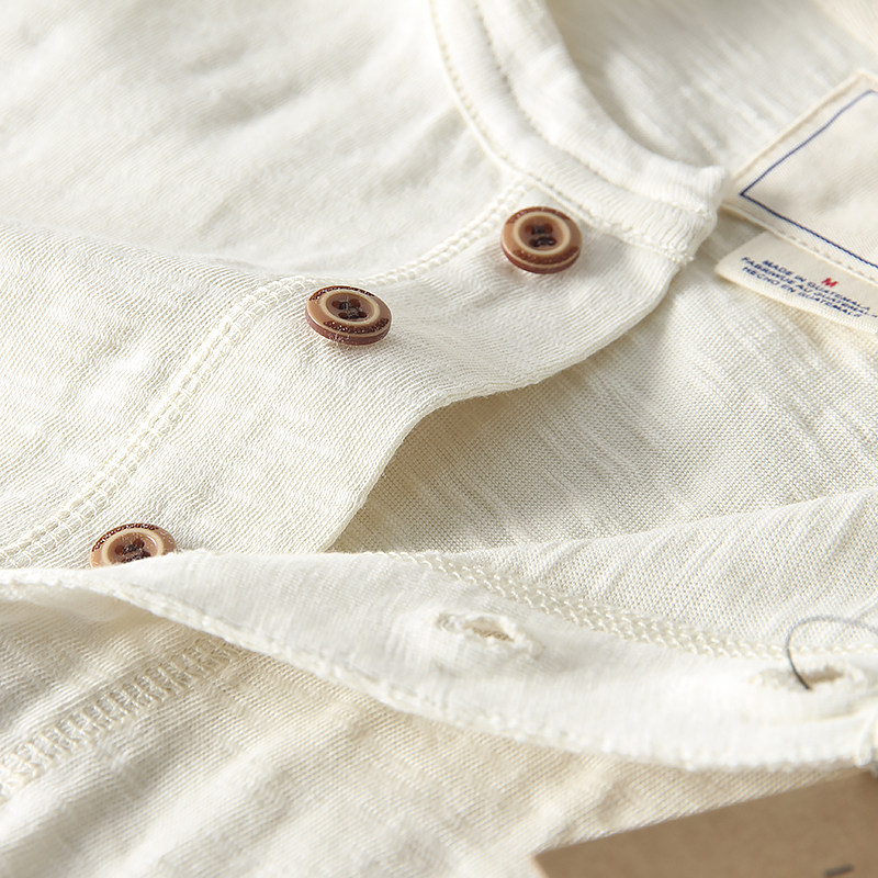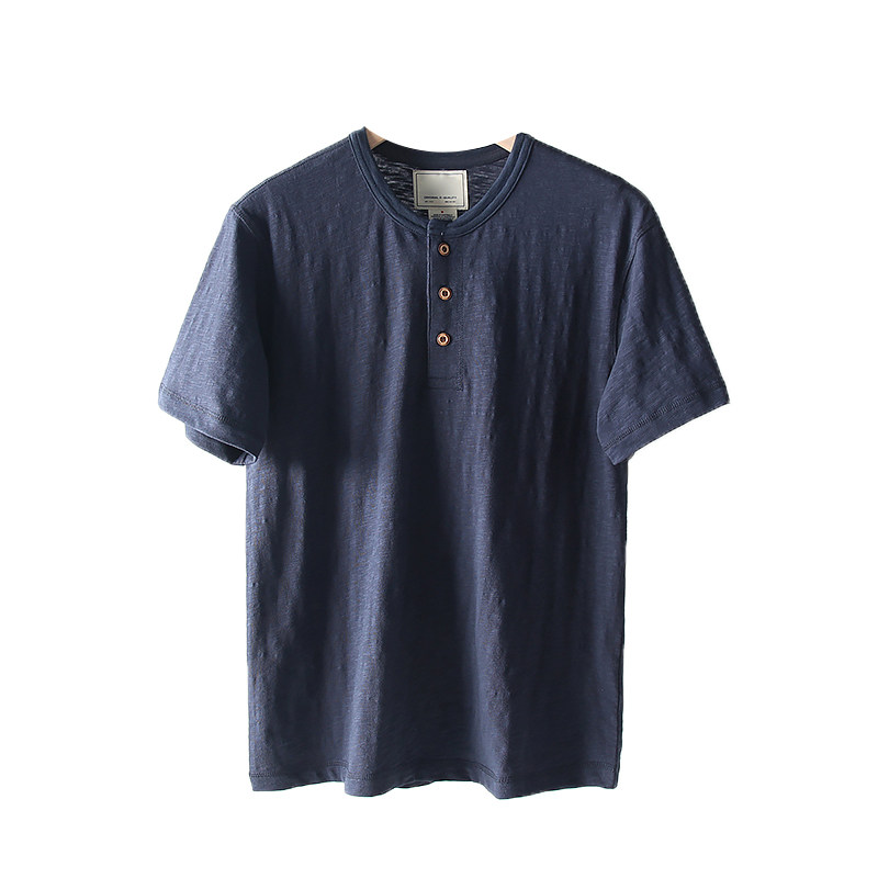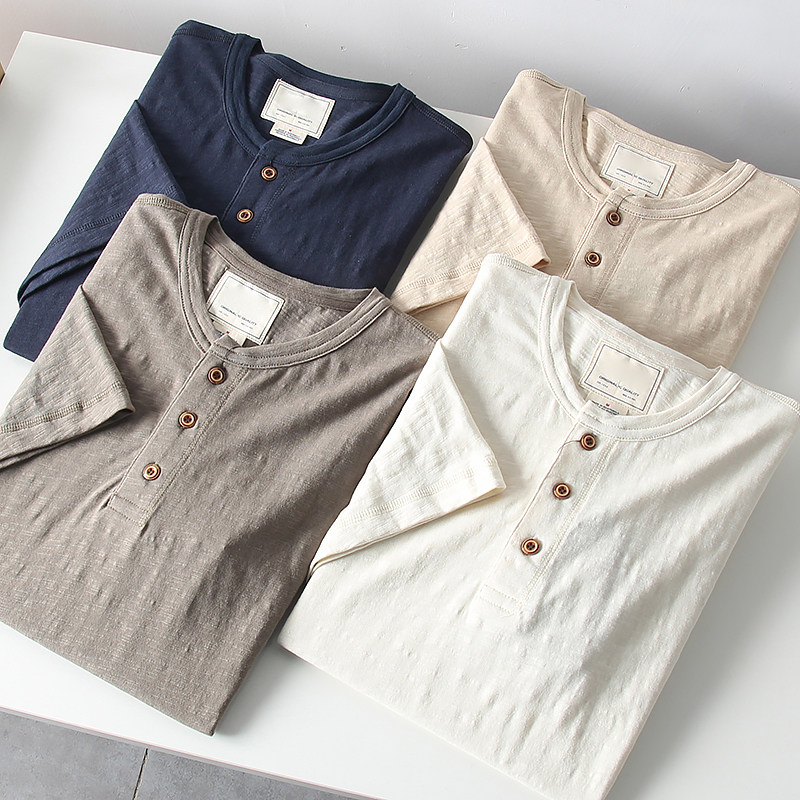 美式亨利领!竹节棉麻混纺!外贸男装夏季透气简约休闲短袖T恤潮