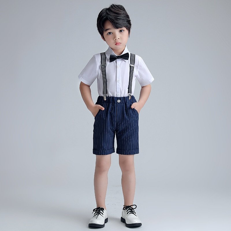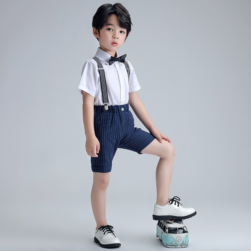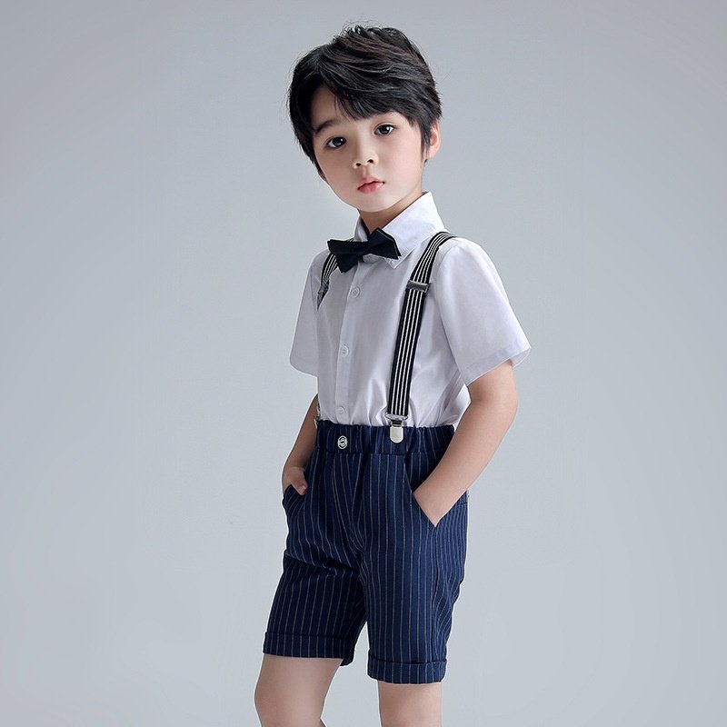 儿童礼服夏季新款韩版绅士短袖背带裤套装男童主持朗诵演出服
