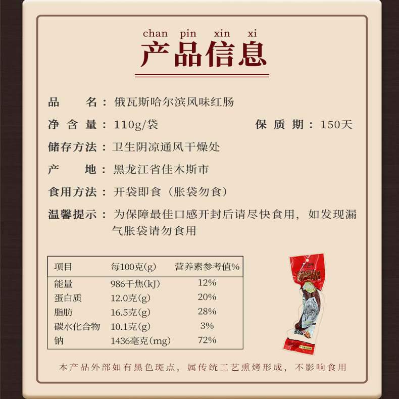 俄瓦斯号哈尔滨风味红肠咸味休闲猪肉开袋即食熟肉食110g*10袋装