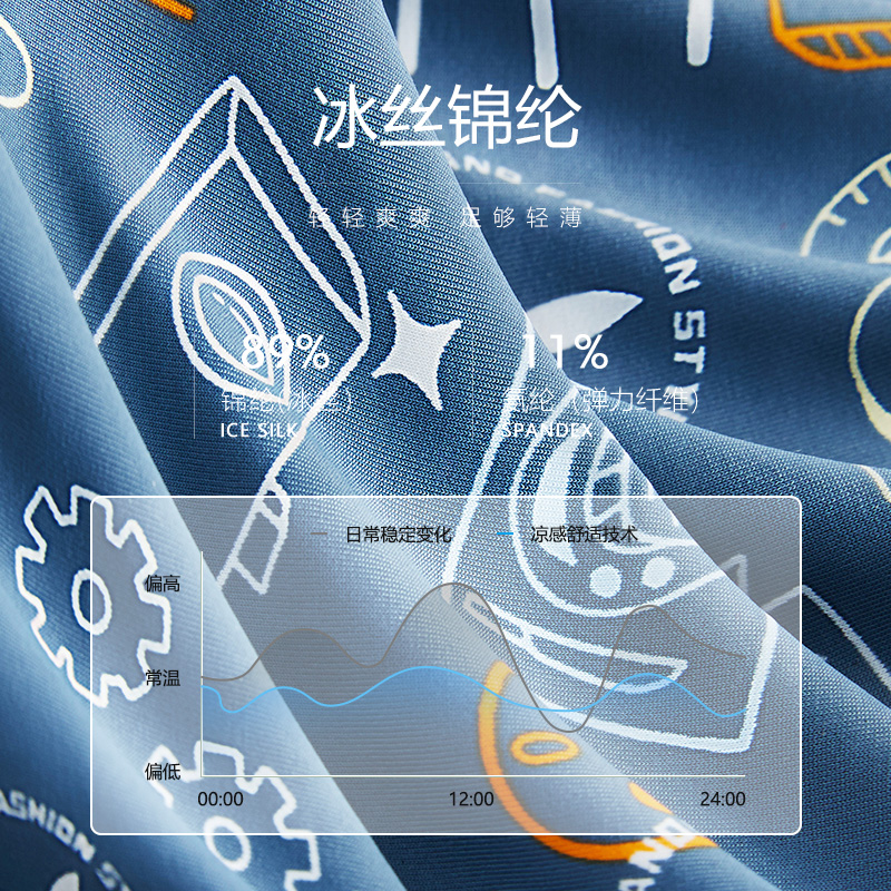 花花公子男士内裤男冰丝夏季男生四角短裤凉感抗菌平角裤印花裤头