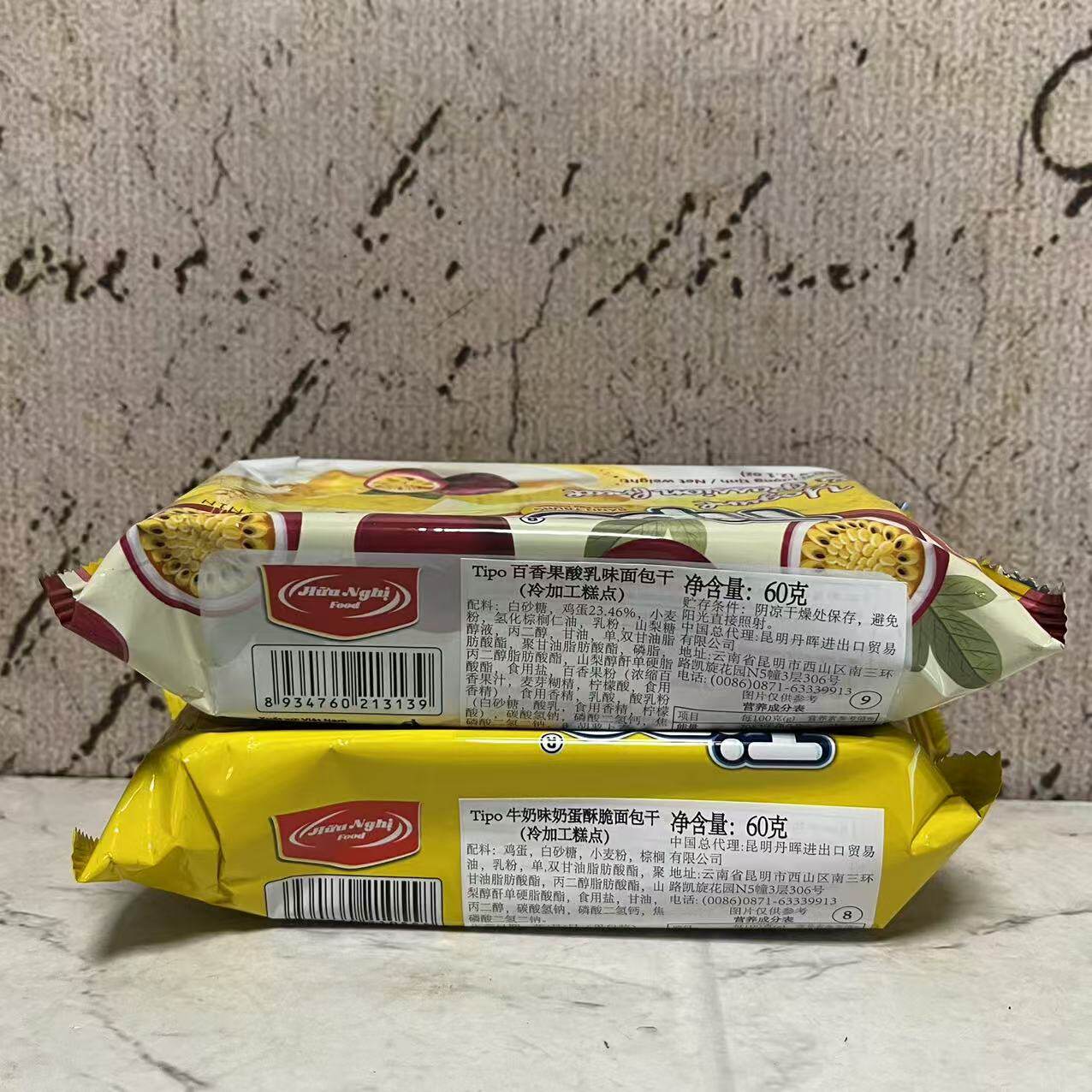 临期特卖 越南进口Tipo百香果酸乳味牛奶味奶蛋酥脆面包干60g袋装