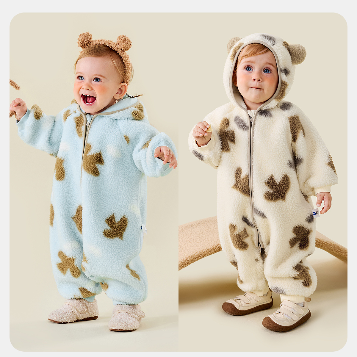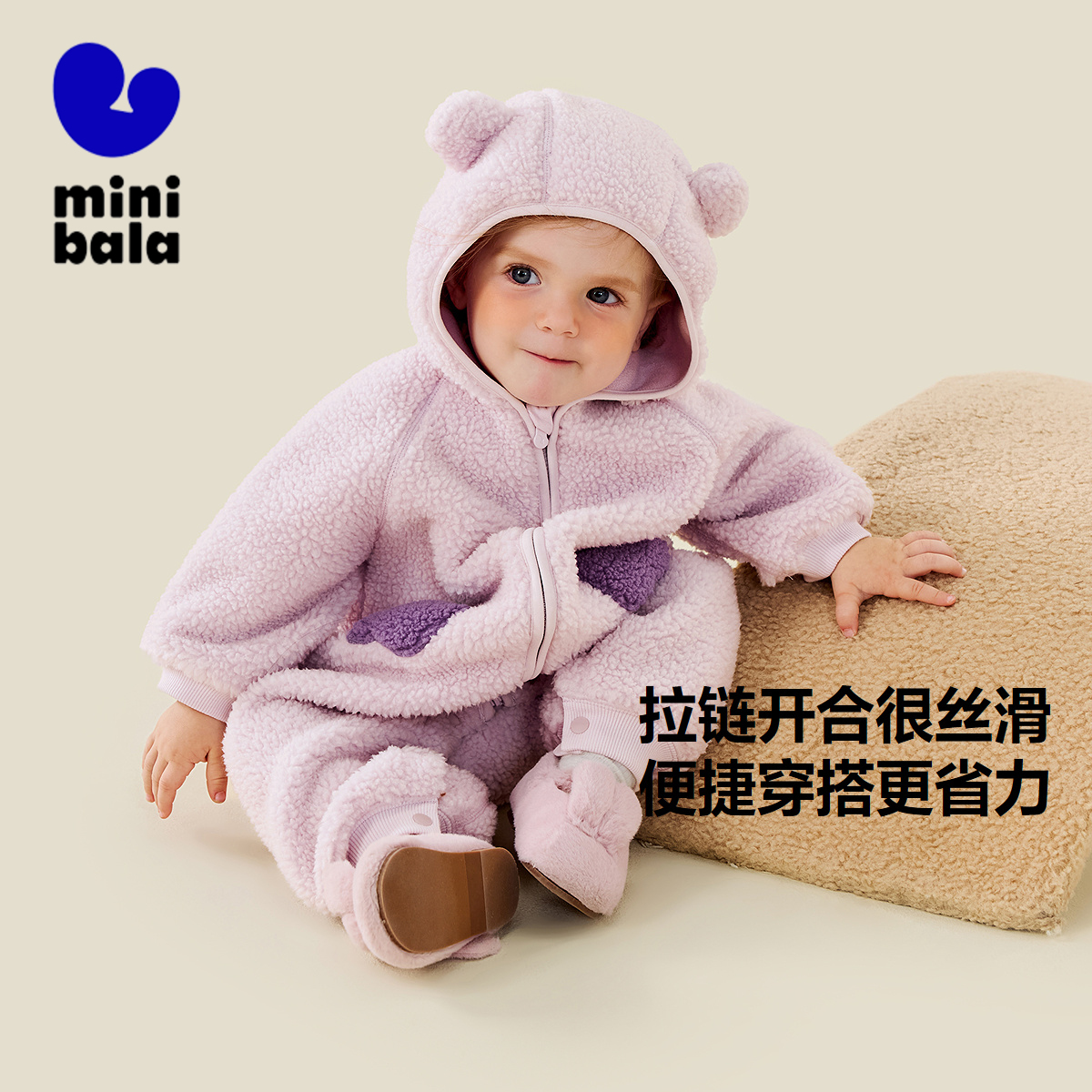 迷你巴拉巴拉婴儿衣服宝宝新生儿加绒连帽连体衣爬服外穿秋冬款