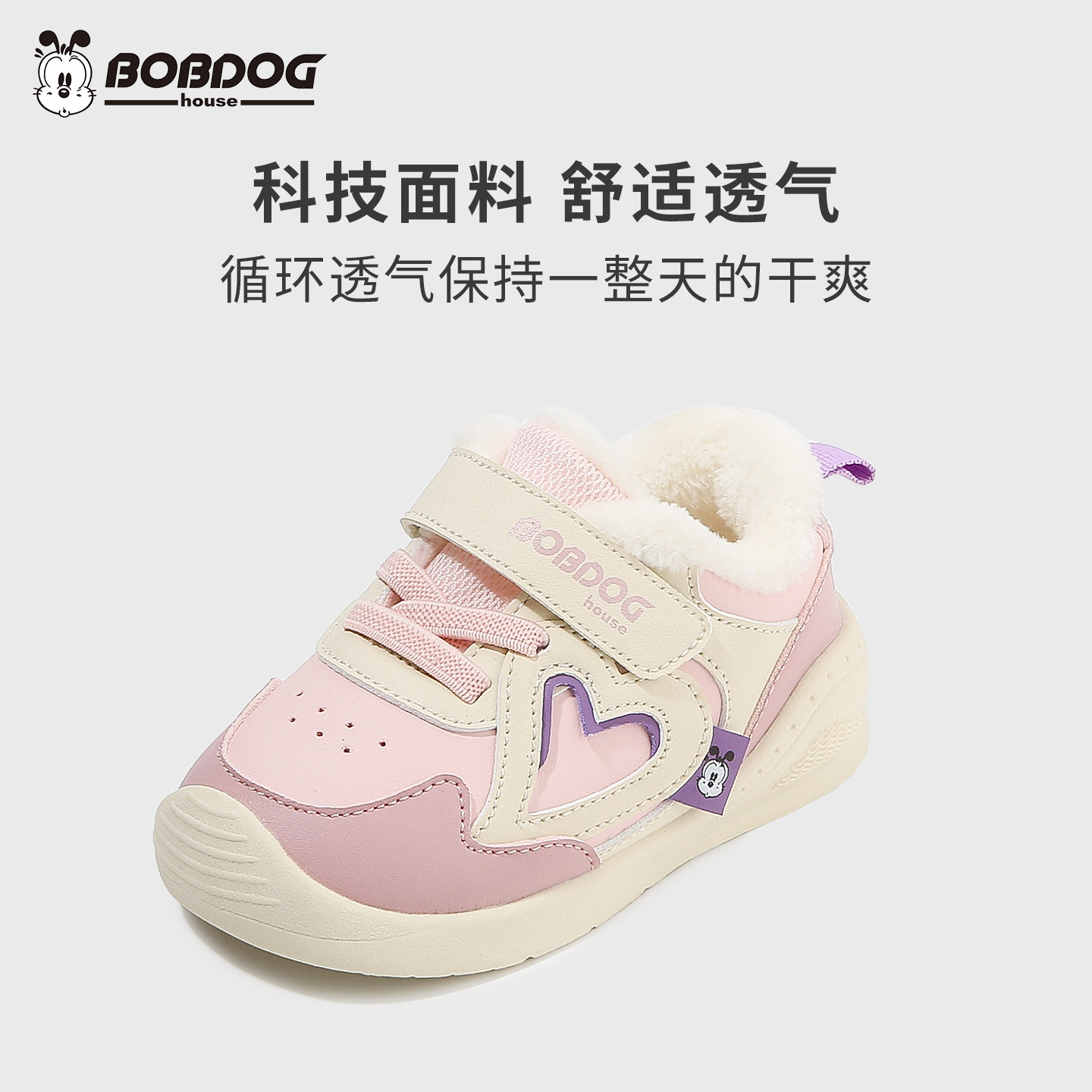 巴布豆House婴童学步鞋加绒棉鞋皮面保暖男女宝宝稳步鞋3岁运动鞋