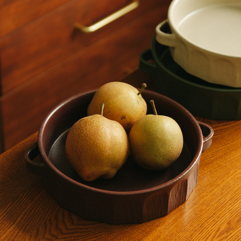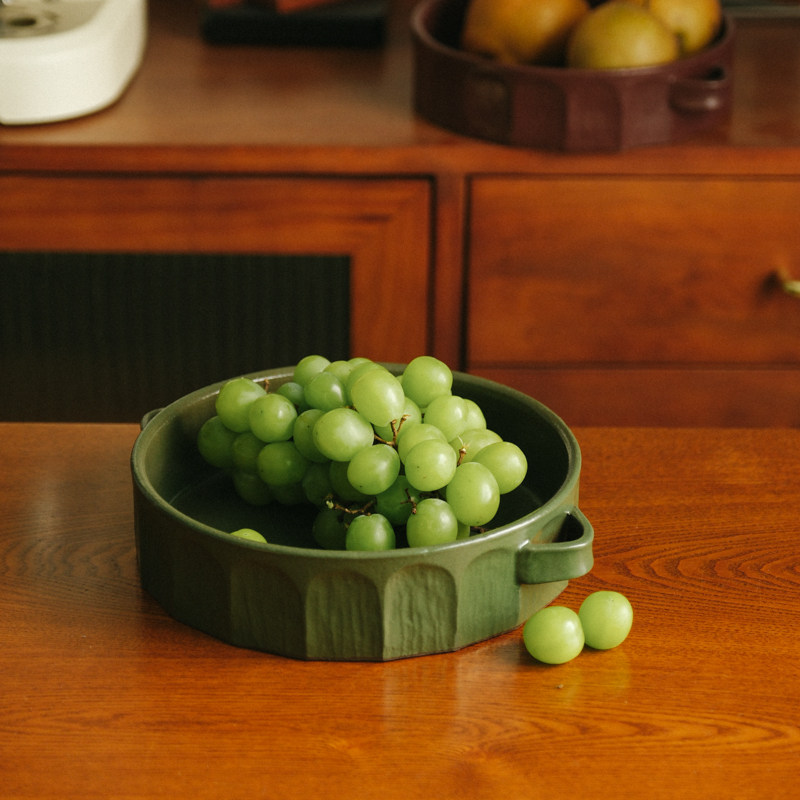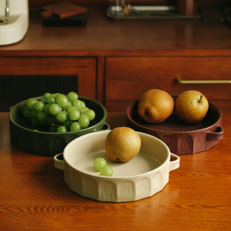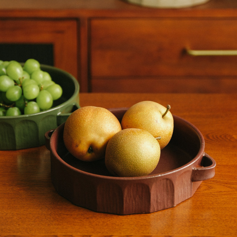 伍杯罗马果盘手工粗陶水果盘小众枣红色侘寂风装饰盘摆件