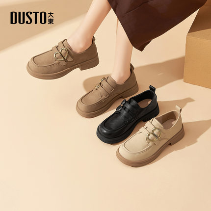 大东乐福鞋女鞋2025秋季新款英伦厚底小皮鞋黑色舒适软底圆头单鞋