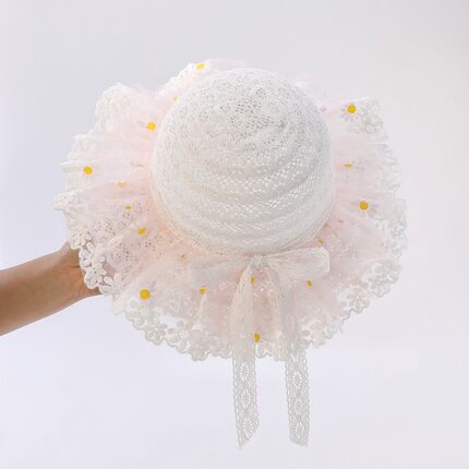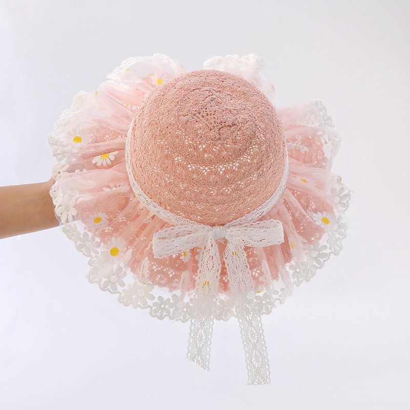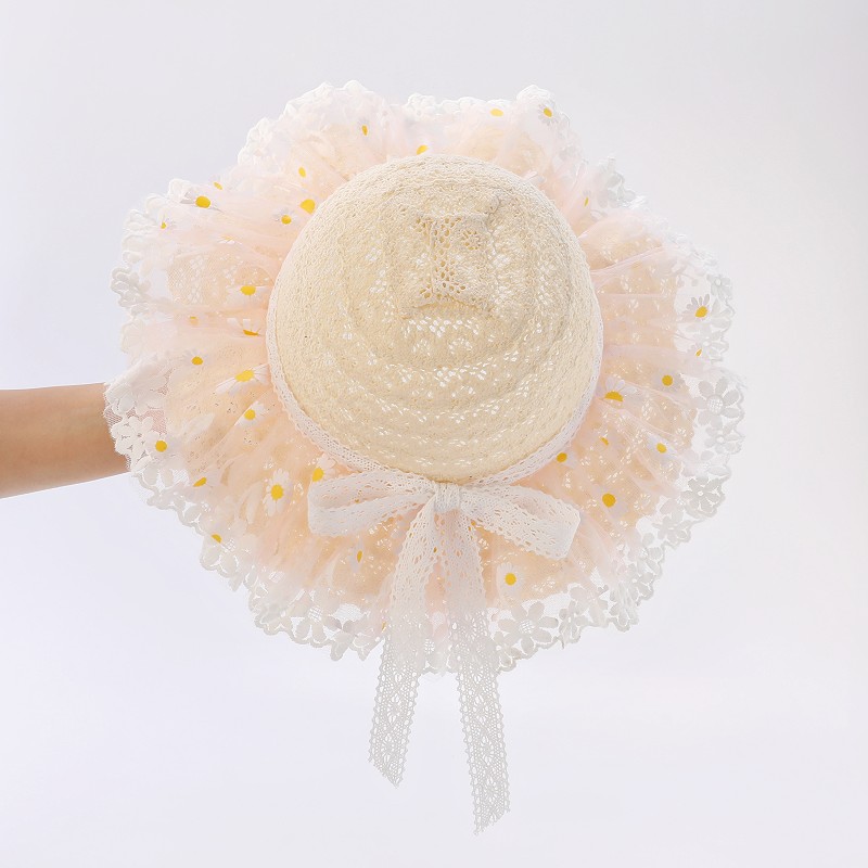 雏菊网纱大檐女宝宝防晒帽子夏季洋气公主M女童草帽婴儿遮阳太热