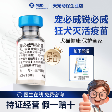 锐必威荷兰进口宠必威狂犬疫苗英特威猫咪宠物狗狗默沙东育苗防疫