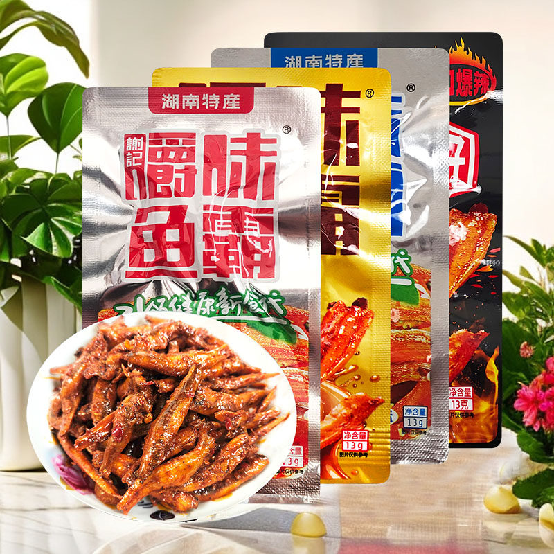 显峰嚼味鱼香辣鱼仔湖南休闲食品麻辣鱼仔零食谢记鱼霸毛毛小鱼干