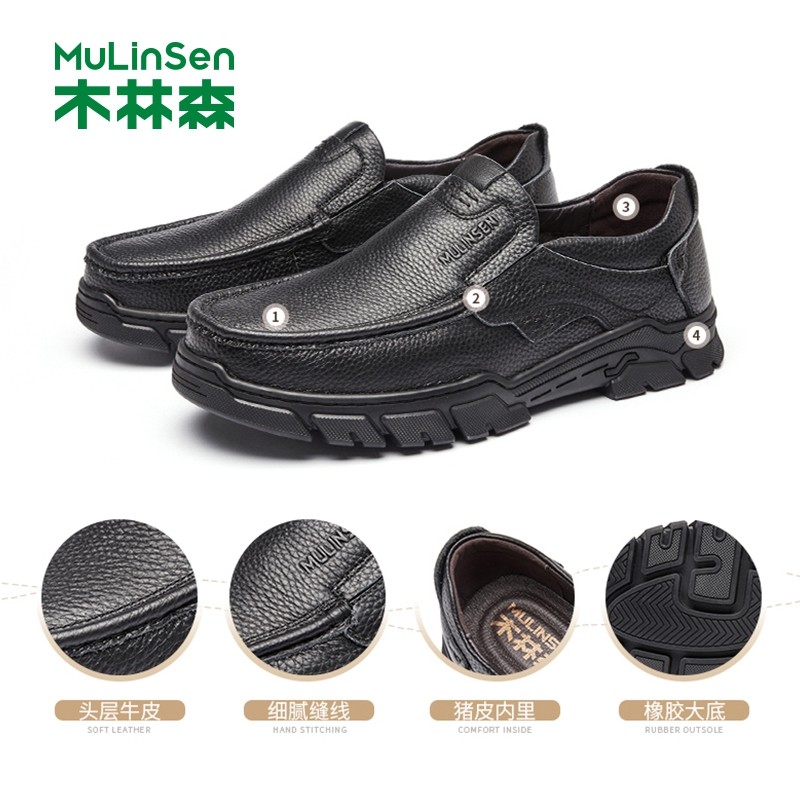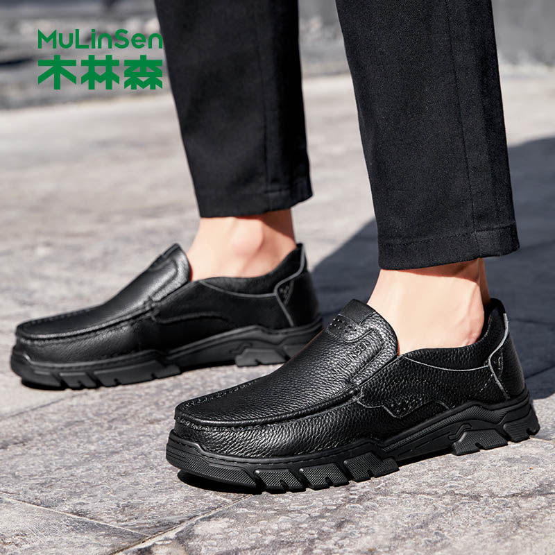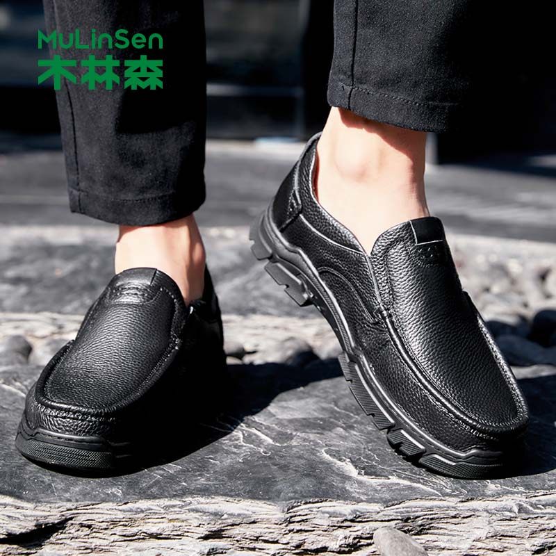 木林森皮鞋男士真皮一脚蹬商务休闲头层牛皮男鞋软底中老年爸爸鞋