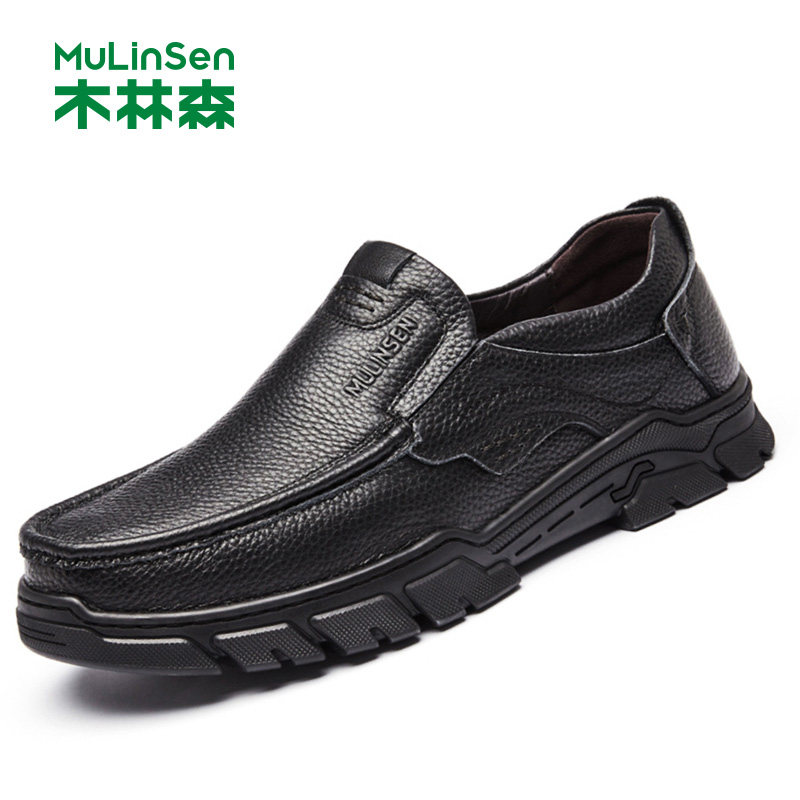 木林森头层牛皮一脚蹬休闲皮鞋