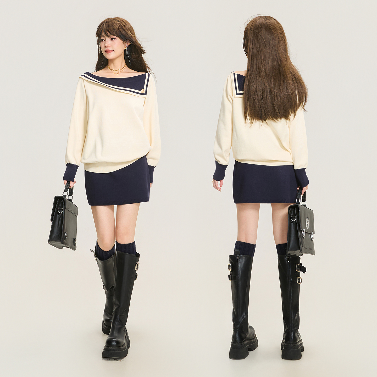 KEIKO miu系学院风穿搭针织衫套装女2025秋季海军领细针薄款毛衣