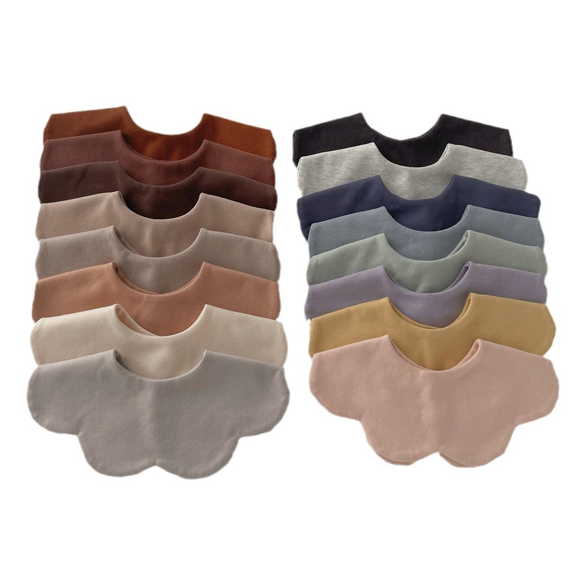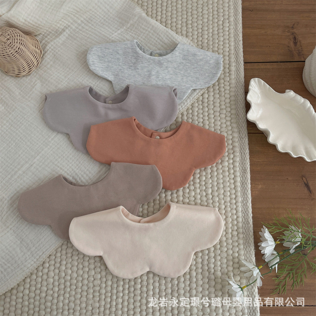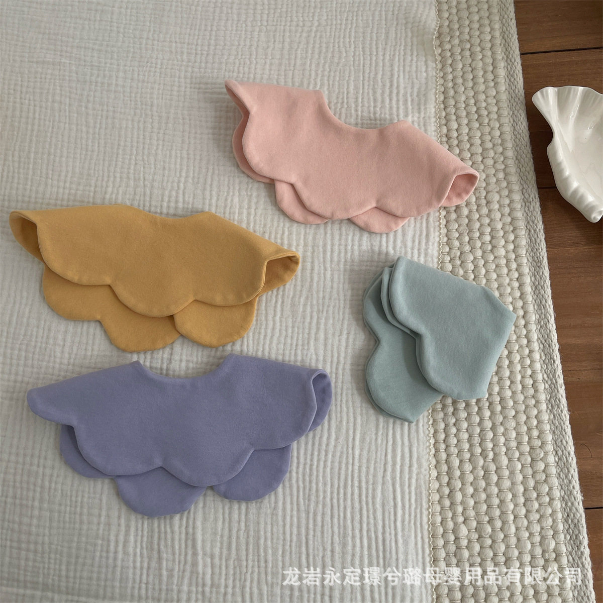 韩版莫兰迪纯色婴幼儿口水巾纯棉花瓣围嘴 双面可以纯色围兜