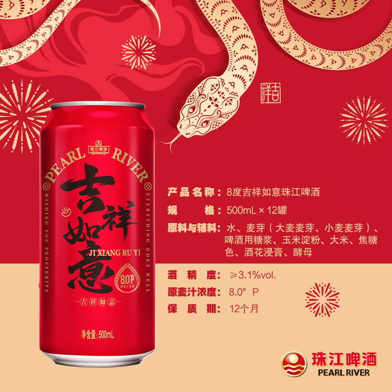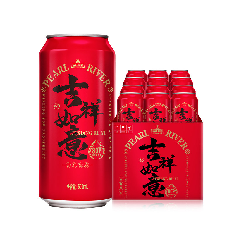 珠江啤酒8度经典清爽红罐吉祥如意喜庆红罐500ml*12罐整箱装礼盒