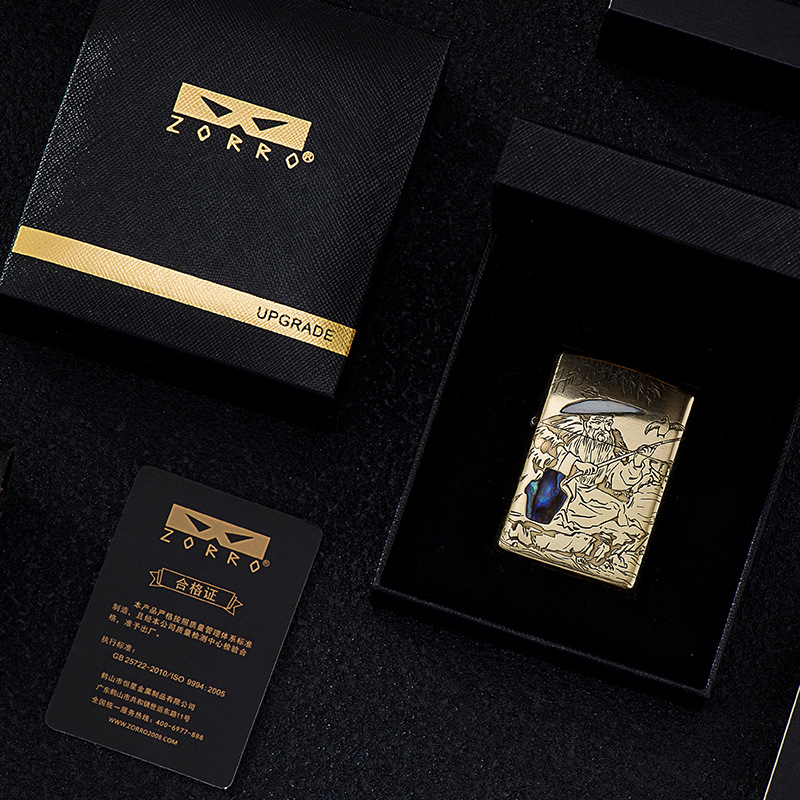 ZORRO佐罗正品纯铜砂轮防风煤油打火机定制堆镀紫铜斗战胜佛悟空