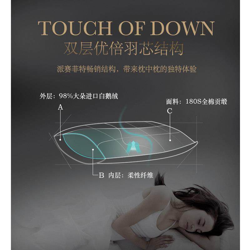 Pacific Coast/派赛菲特98白鹅绒枕头五星级酒店羽绒枕芯柔软回弹