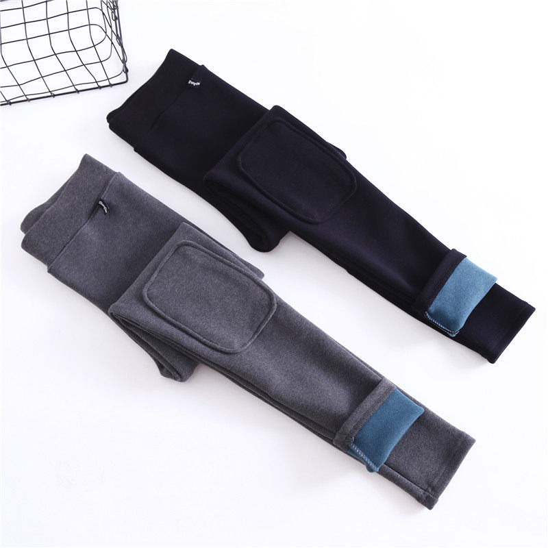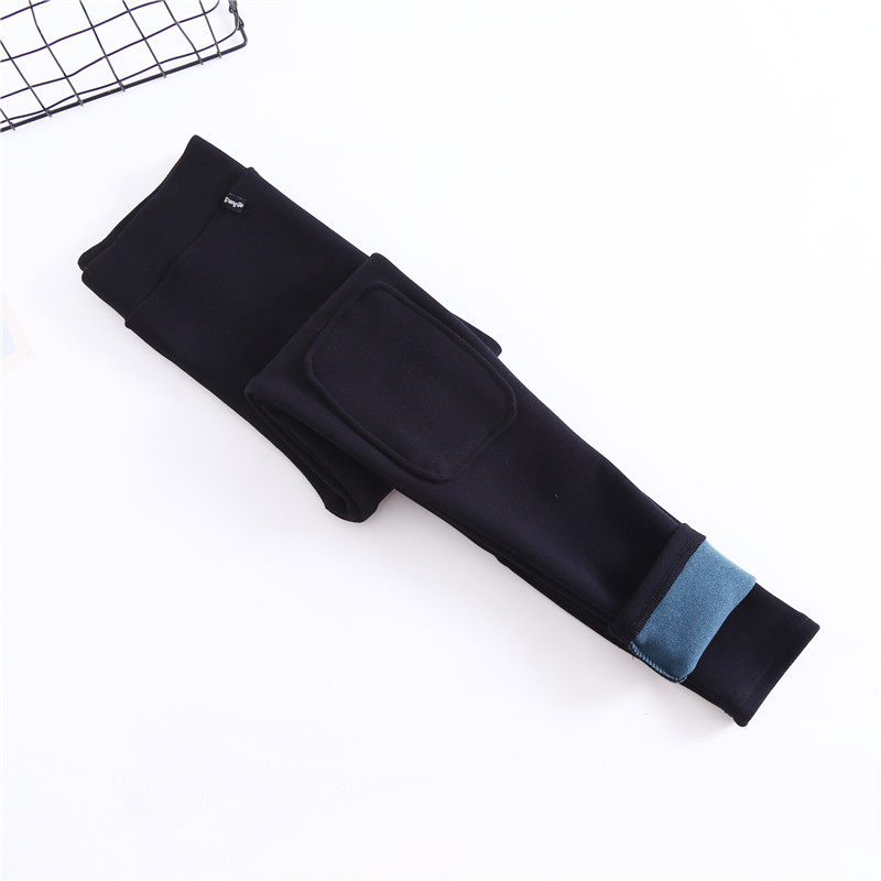 2023秋冬加绒补丁打底裤女膝盖加厚弹力修身保暖外穿高腰小脚裤女