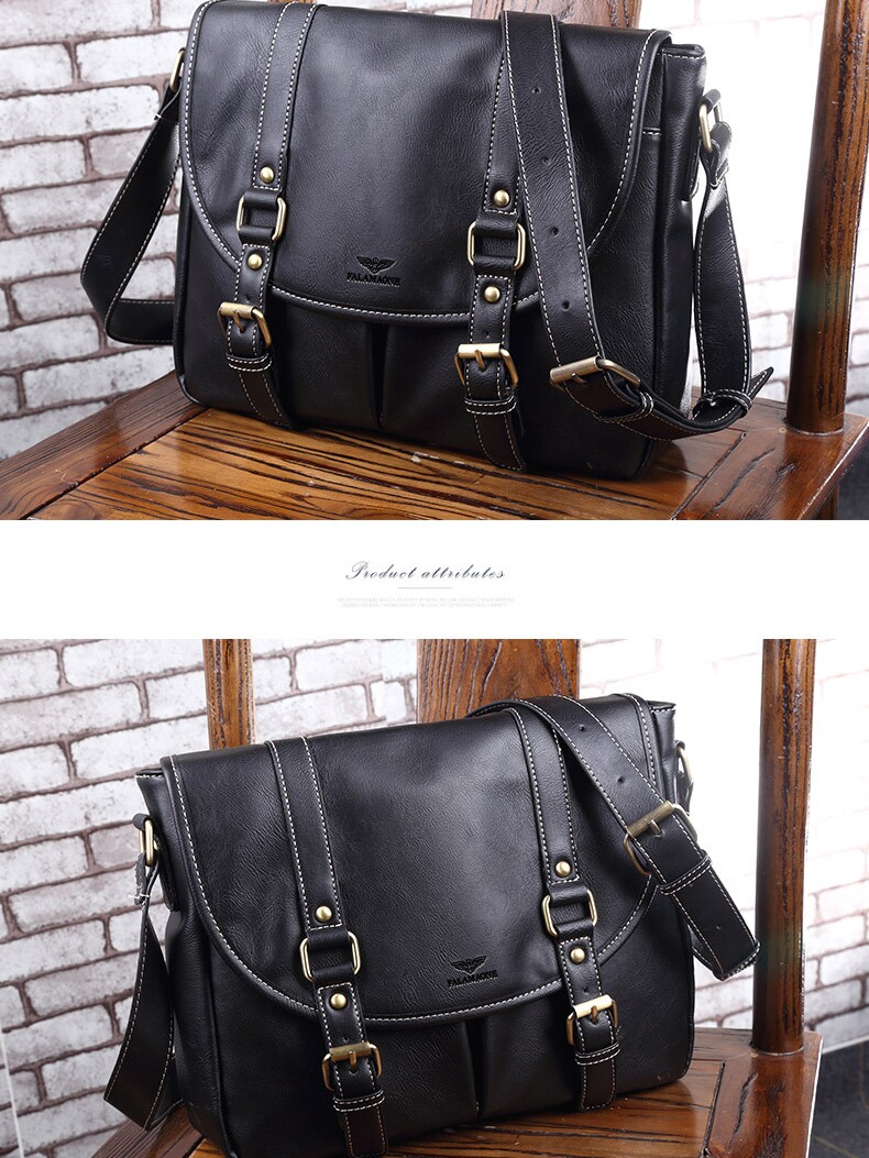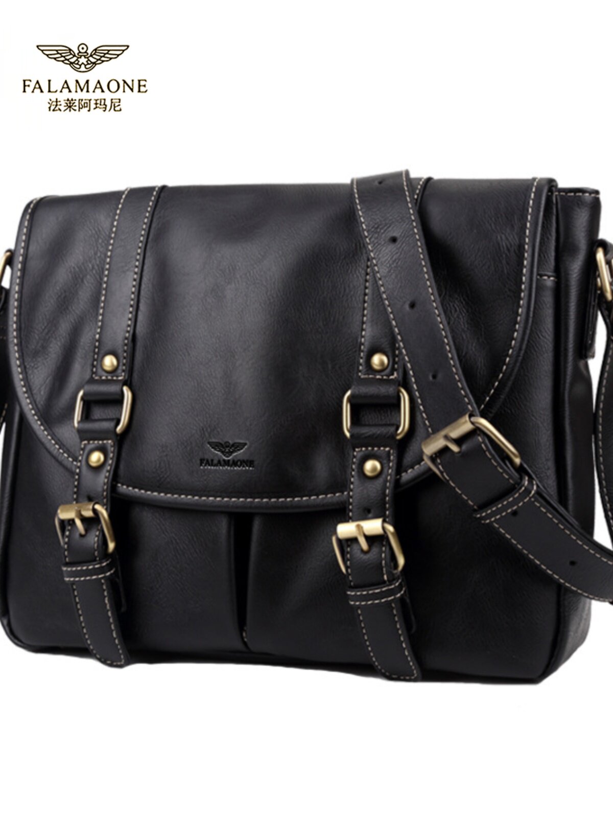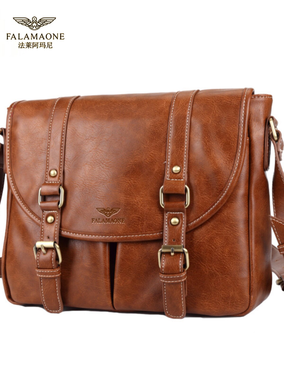 正品法莱阿玛尼牛皮男士单肩包真皮斜跨腰包大容量时尚商务公文包