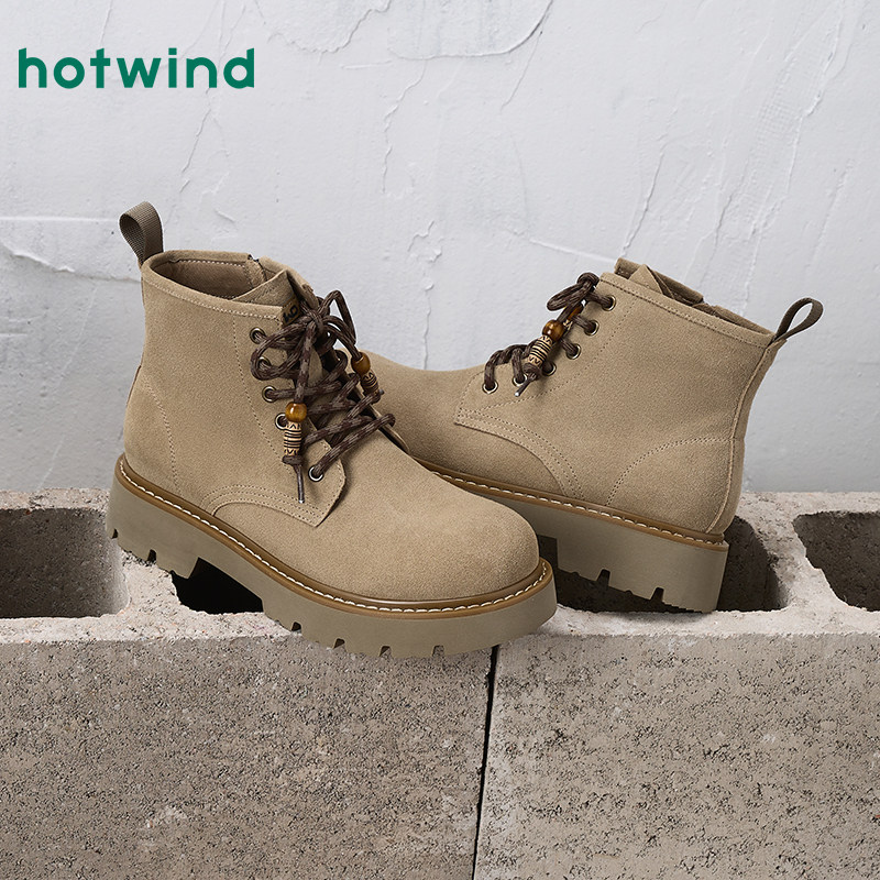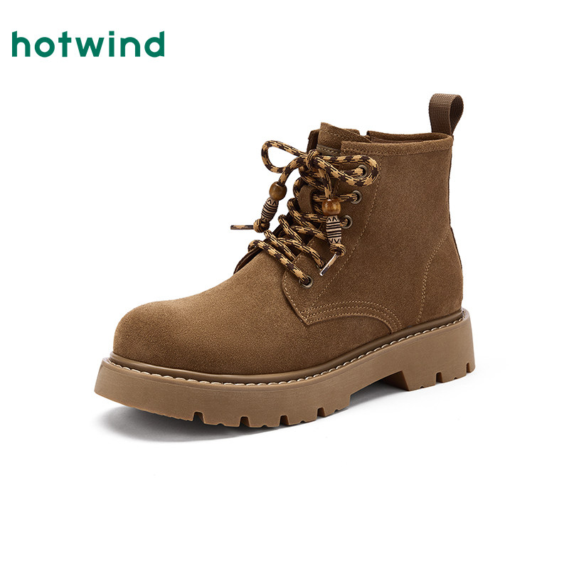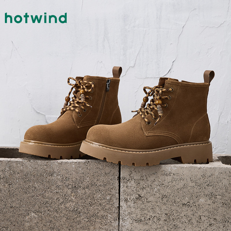 热风男鞋2025年冬季新款男士复古休闲马丁靴厚底百搭男靴棕色靴子