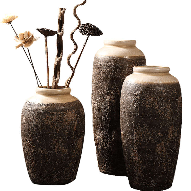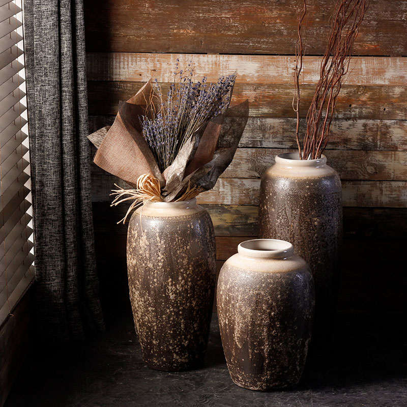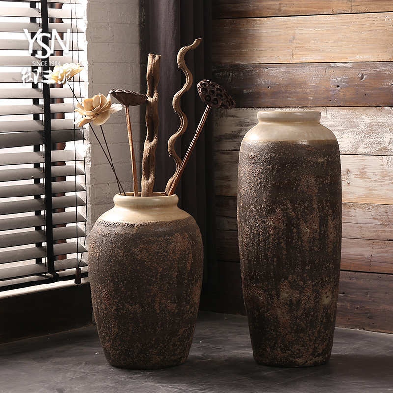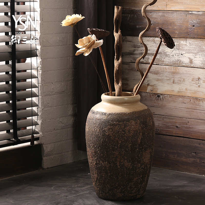 景德镇陶瓷复古落地花瓶手工粗陶陶罐干花花器客厅大花盆插花摆件