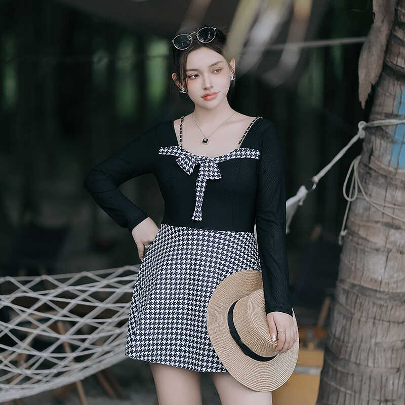 加肥大码泳衣女胖mm200斤保守宽松遮肚显瘦长袖防嗮连体裙游泳装